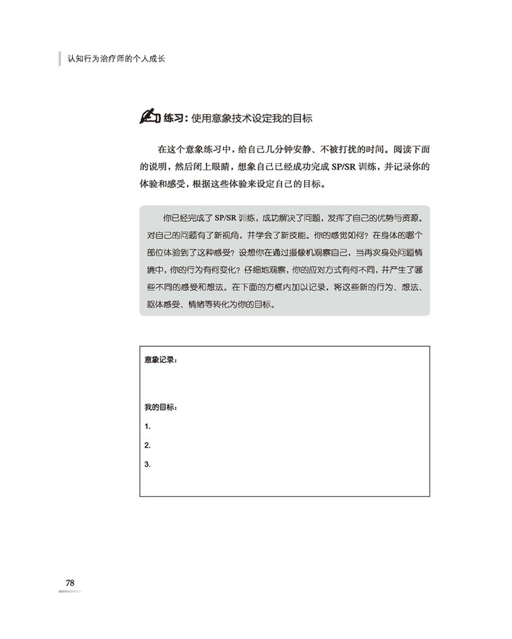学习认知行为治疗最好的方法之一,是将它融入自己的生活。只有经过日复一日的反复实践,你才能真正领悟认知行为治疗的魅力,领悟到它对情绪、认知和行为的影响,以及来访者在使用该方法时可能会遇到的障碍。