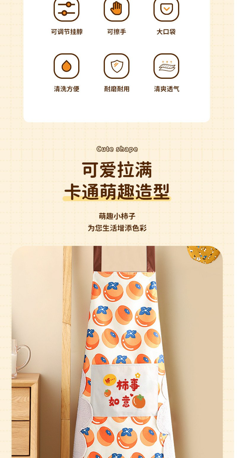 厨房家用 围裙创意中国风元素防油污时尚棉麻围裙女烘焙围裙 1件