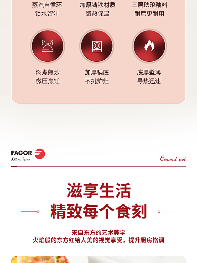 法格(FAGOR)法格铸铁珐琅锅FG-HZT2201TG【LXGWZQ5.0】 商品图4