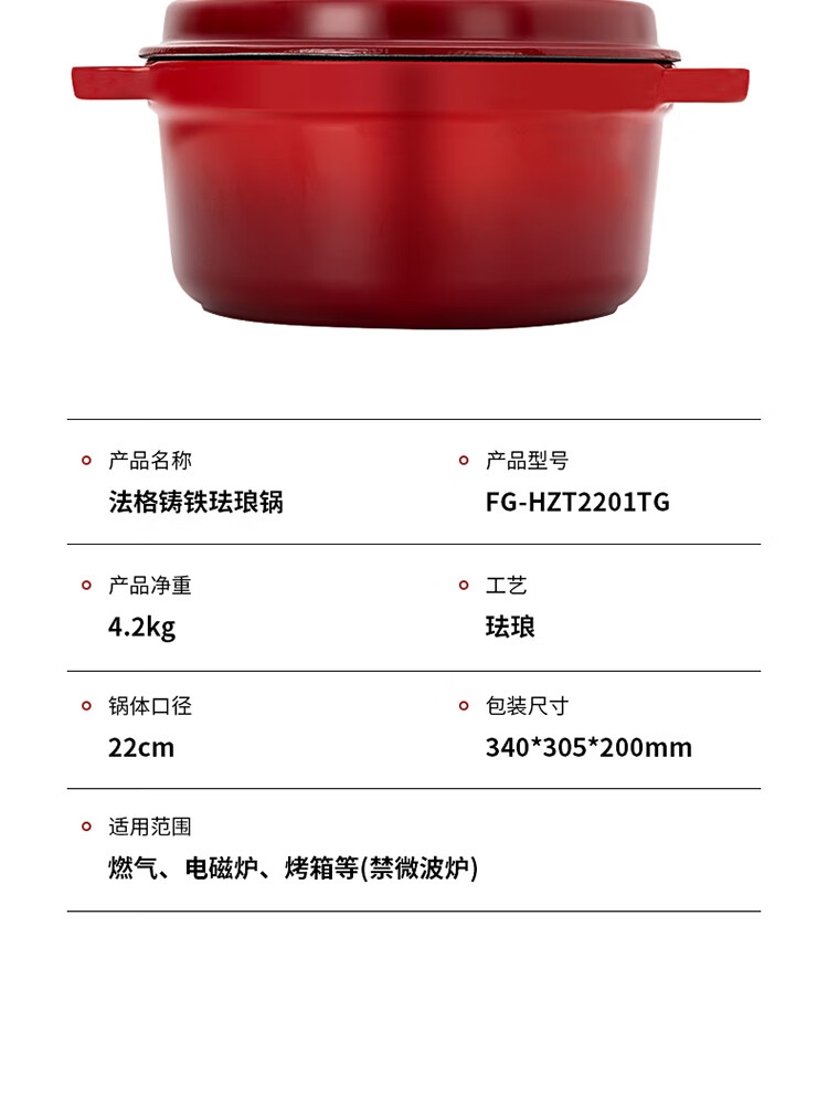 法格(FAGOR)法格铸铁珐琅锅FG-HZT2201TG