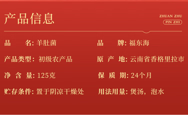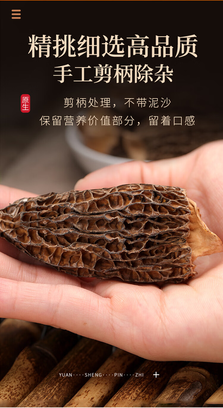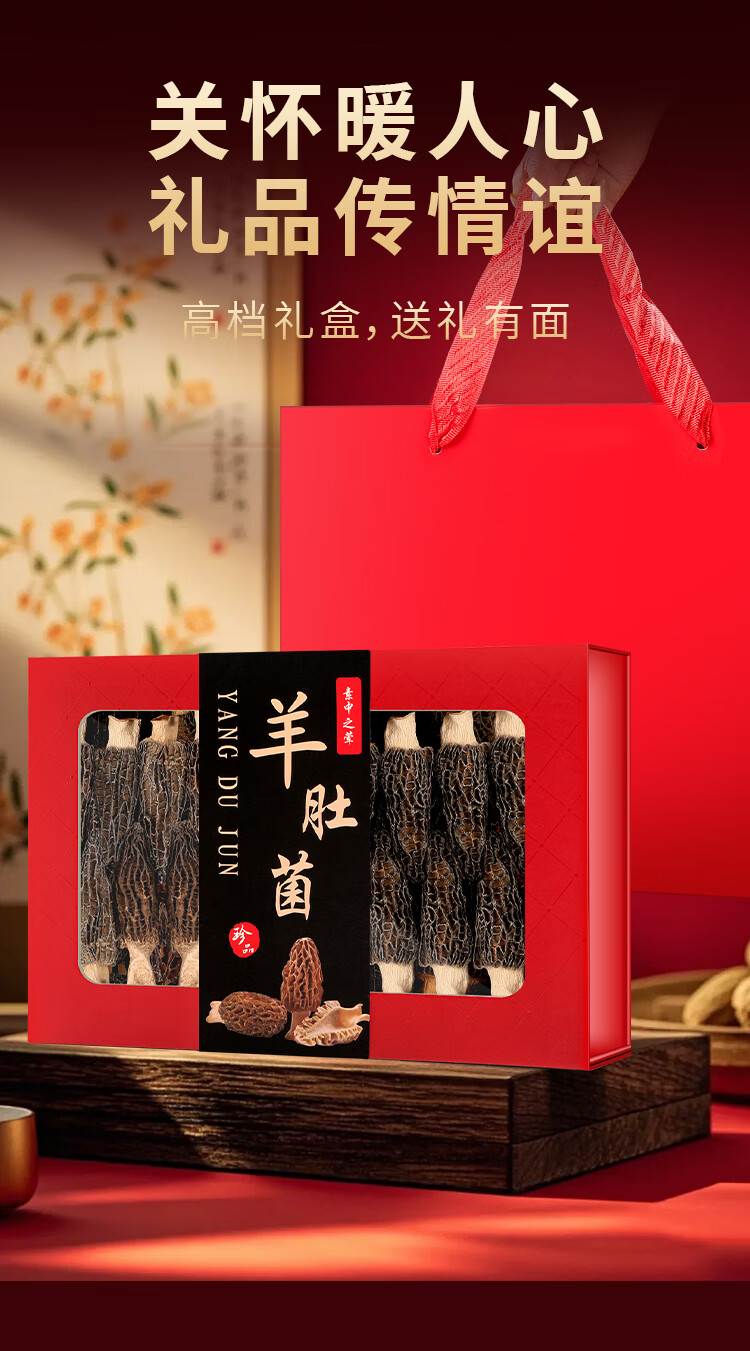 福东海 羊肚菌125g 约5-8cm菌菇干货煲鸡汤火锅食材 送礼长辈礼盒