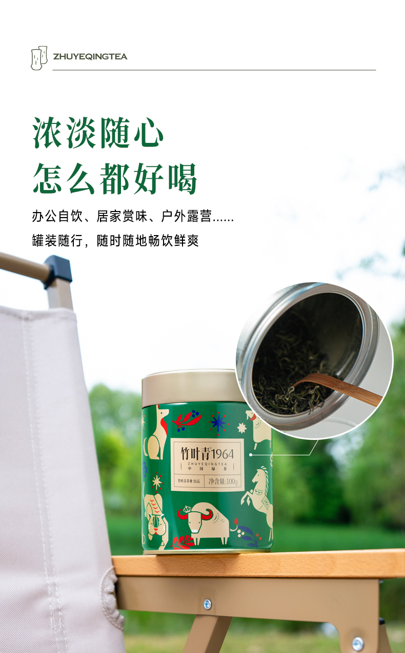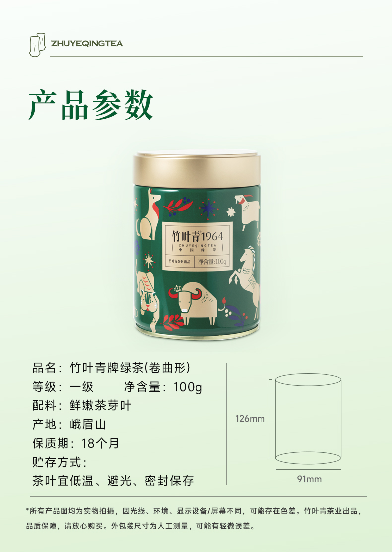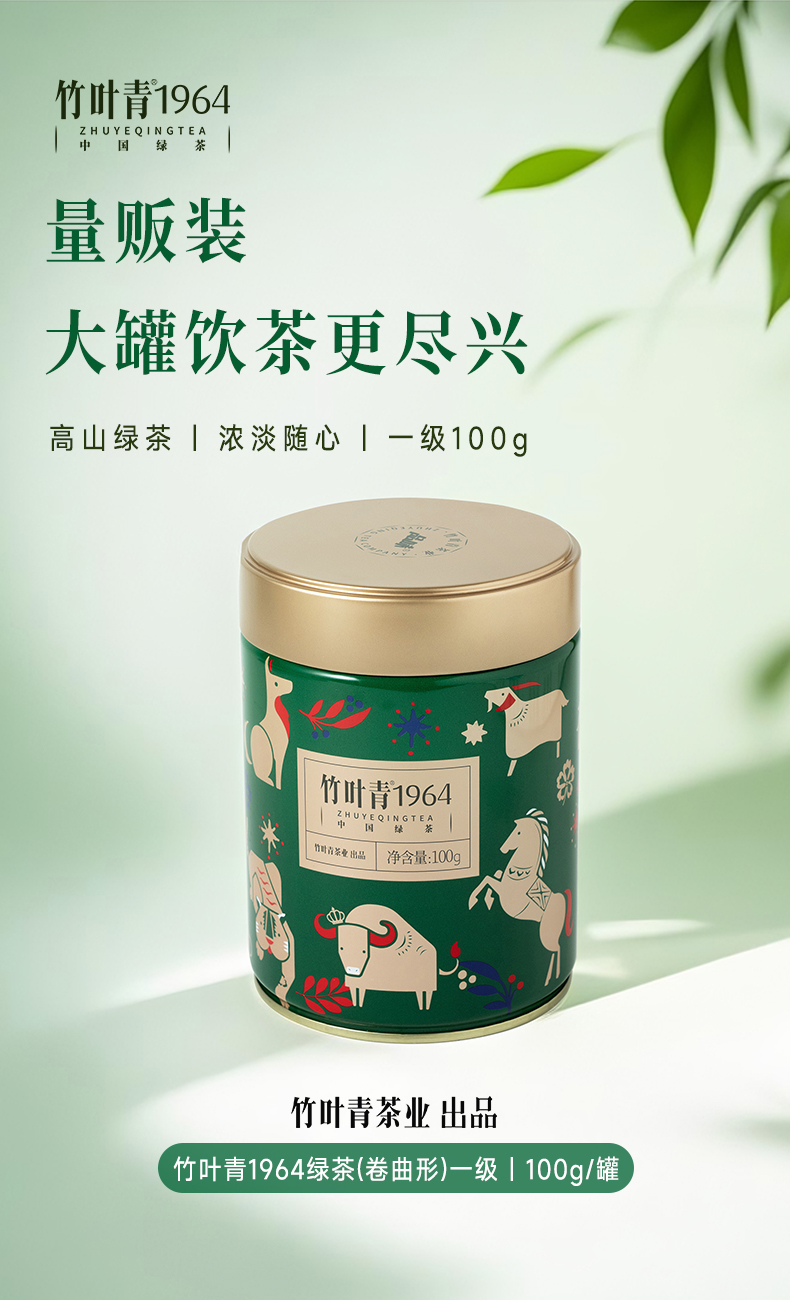 竹叶青1964绿茶卷曲形峨眉高山茶一级罐装100g自饮口粮茶四川绿茶