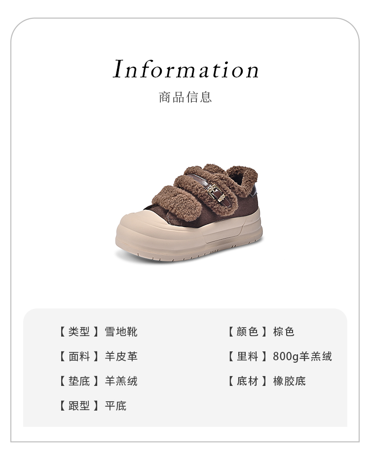 经典鲨2025冬专柜新品羊皮革百搭厚底鞋羊羔毛御寒雪地靴女KW279-558191