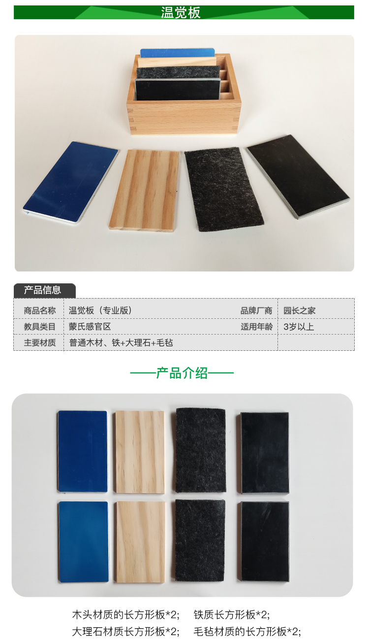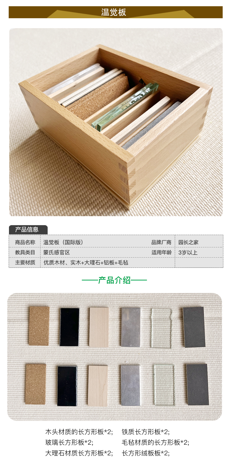 蒙氏教具 蒙台梭利 蒙特梭利教具 幼儿园儿童早教玩具 温觉板
