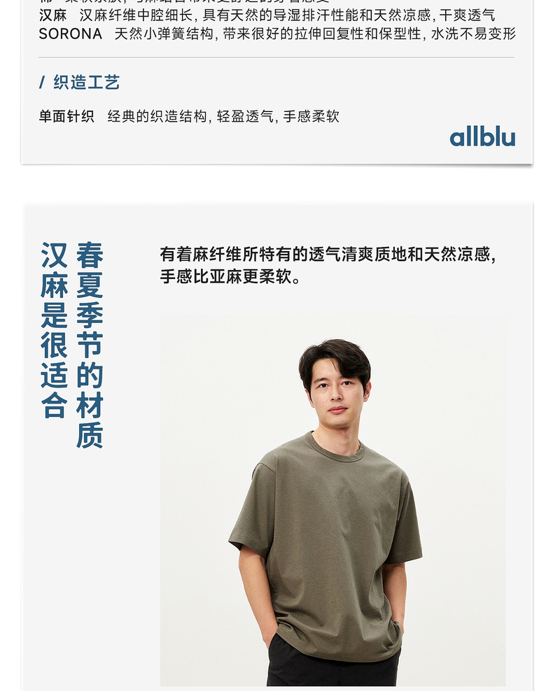 【春Vol.2】allblu男装“不易皱能防晒”26新款【机能汉麻】男士短袖T恤