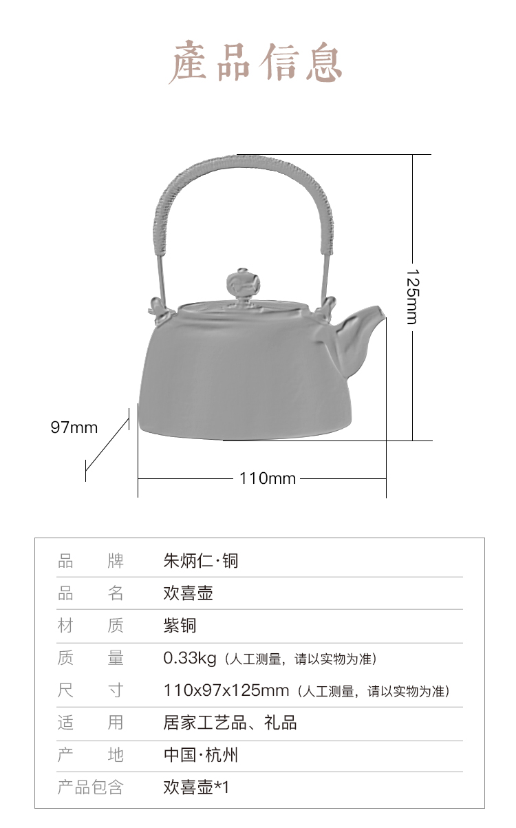 【一壶春色】朱炳仁铜 欢喜壶 茶壶铜工艺品装饰品茶具朱炳·铜 紫铜 燕喜壶 新品非遗家居茶道手工铜壶