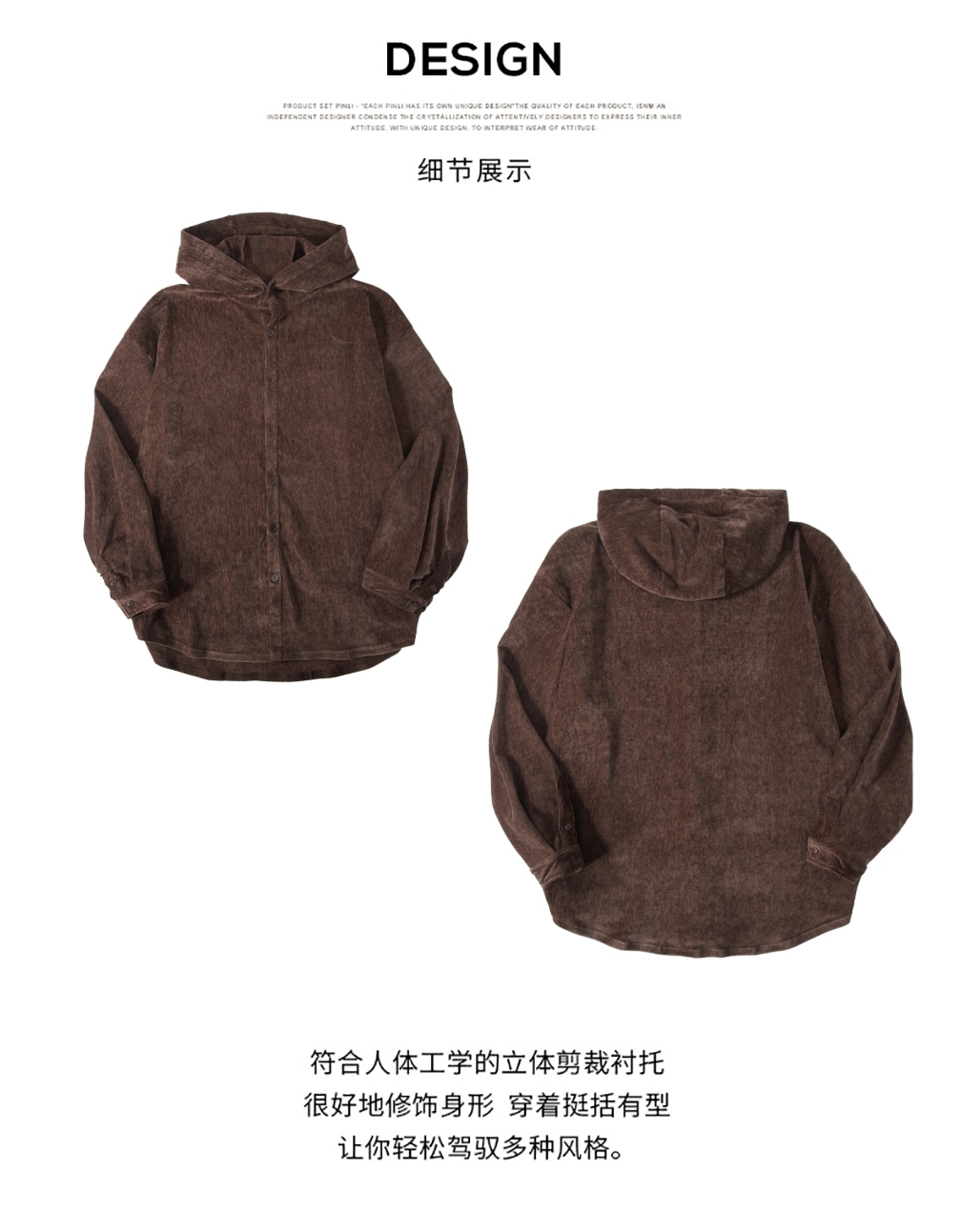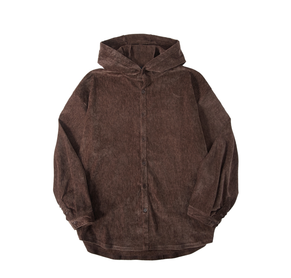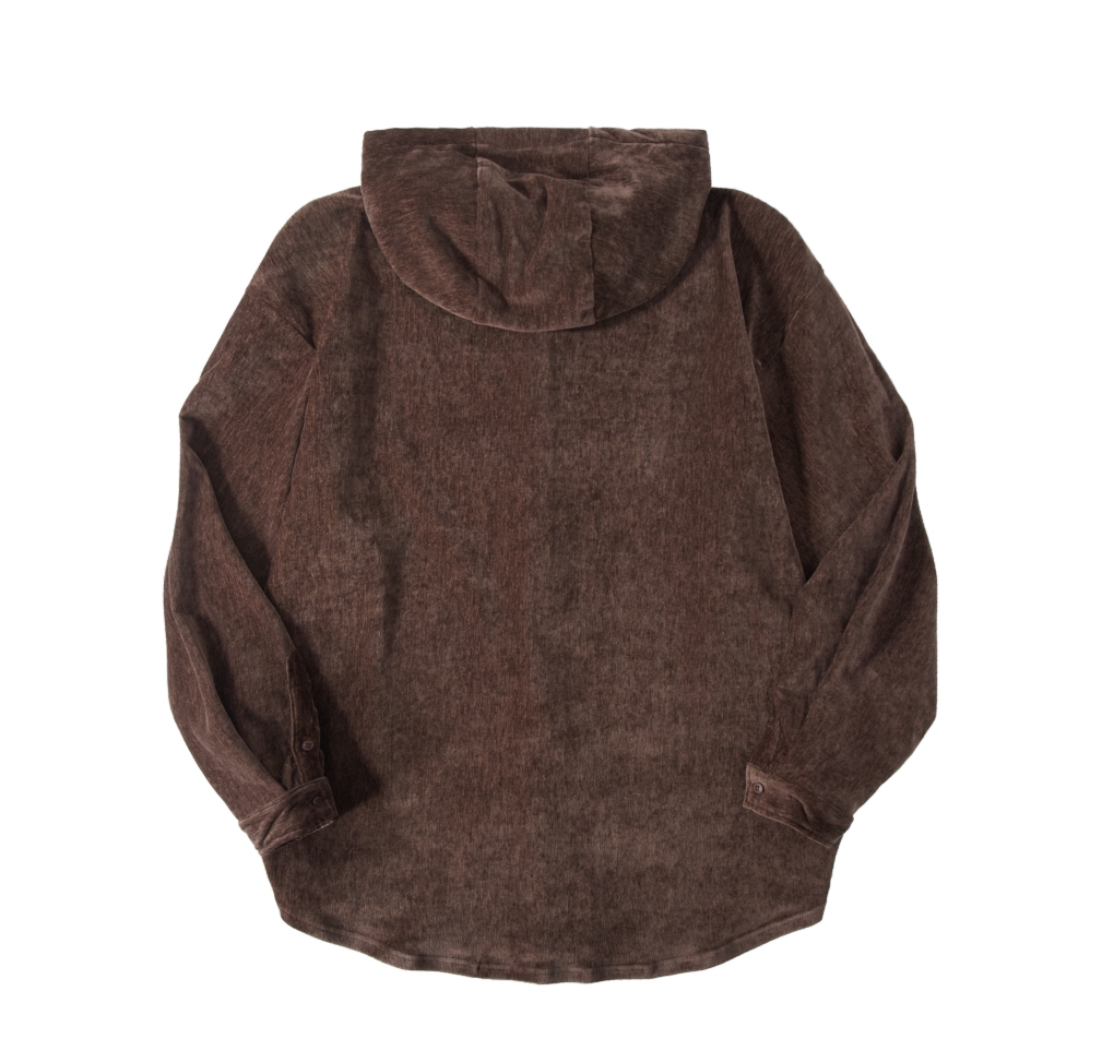 PINLI品立春季新款男士宽松咖啡色连帽长袖衬衫休闲衬衣上衣B243113065