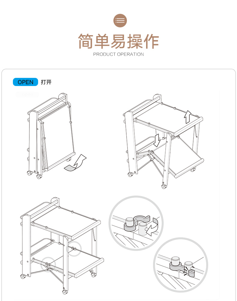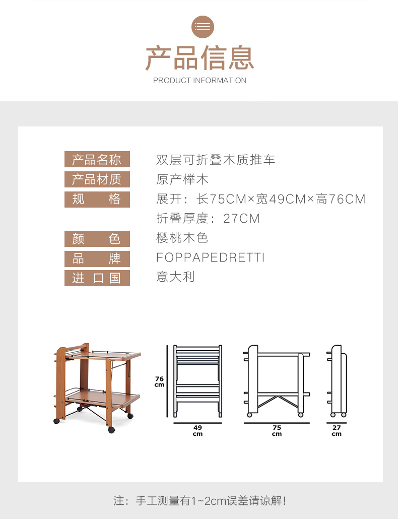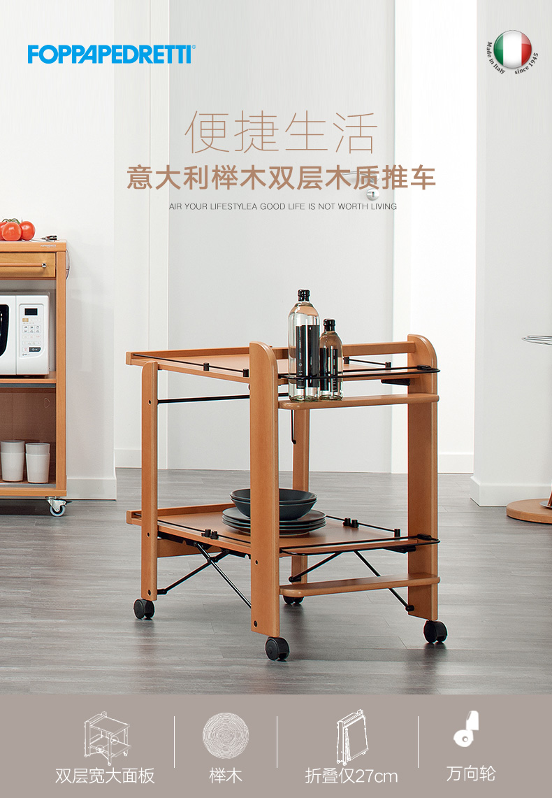 【6F】利快 木质双层推车餐车福帕FOPPA意大利进口实木厨房置物架多功能收纳架