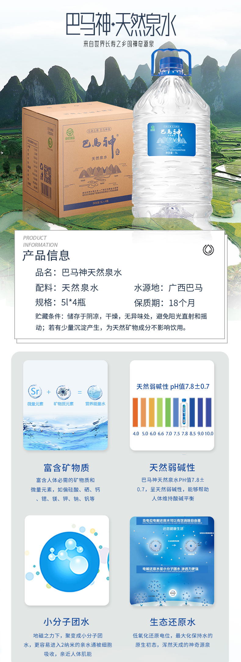 巴马神天然泉水5L*4瓶/箱