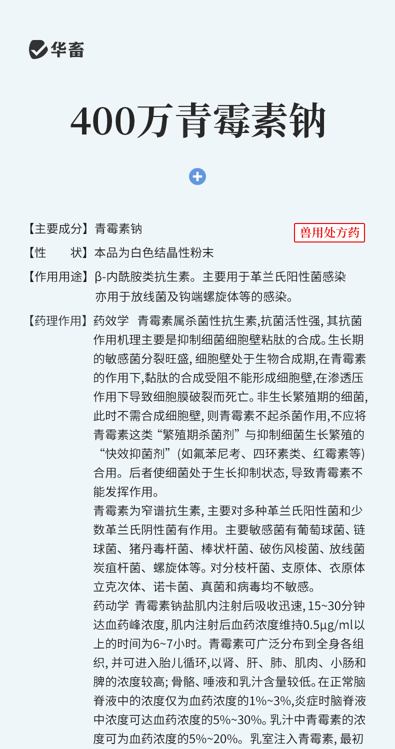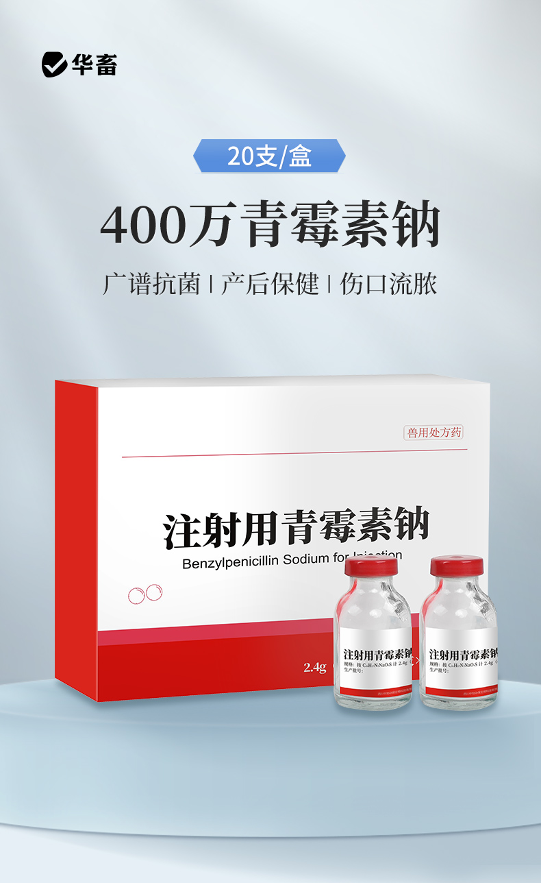 华畜兽药 400万注射用青霉素钠2.4g*20支 抗菌消炎 广谱药