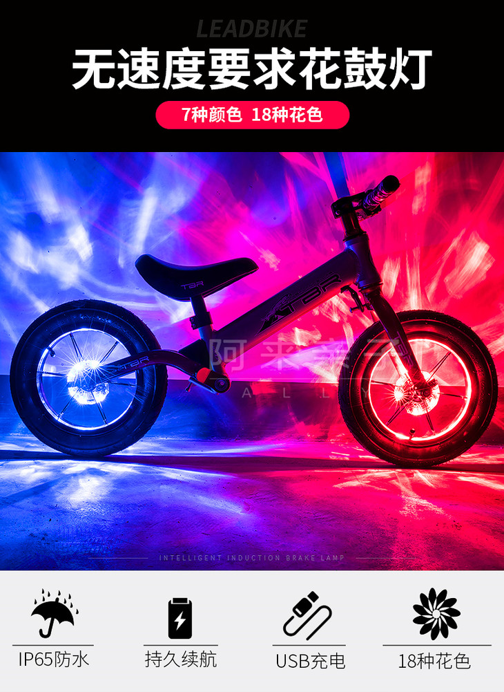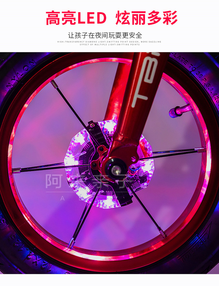 儿童平衡车专用花鼓灯夜间七彩风火轮闪光自行车灯单车配件装饰灯