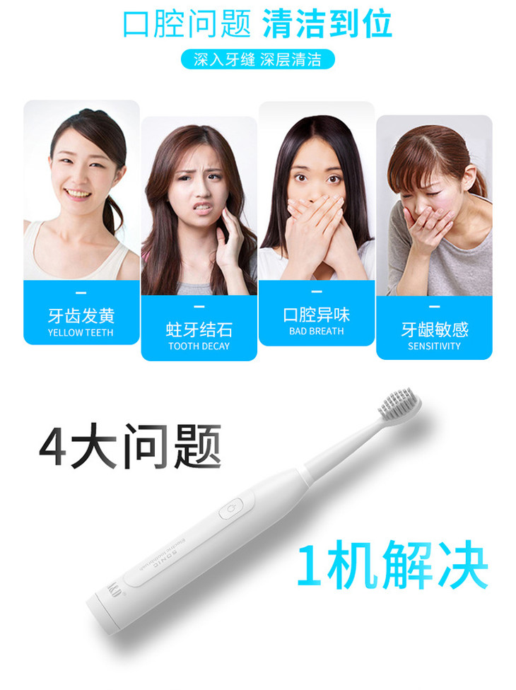 〖高颜值智能电动牙刷〗艾立德电动牙刷成人儿童声波充电牙刷防水软毛美白情侣牙刷