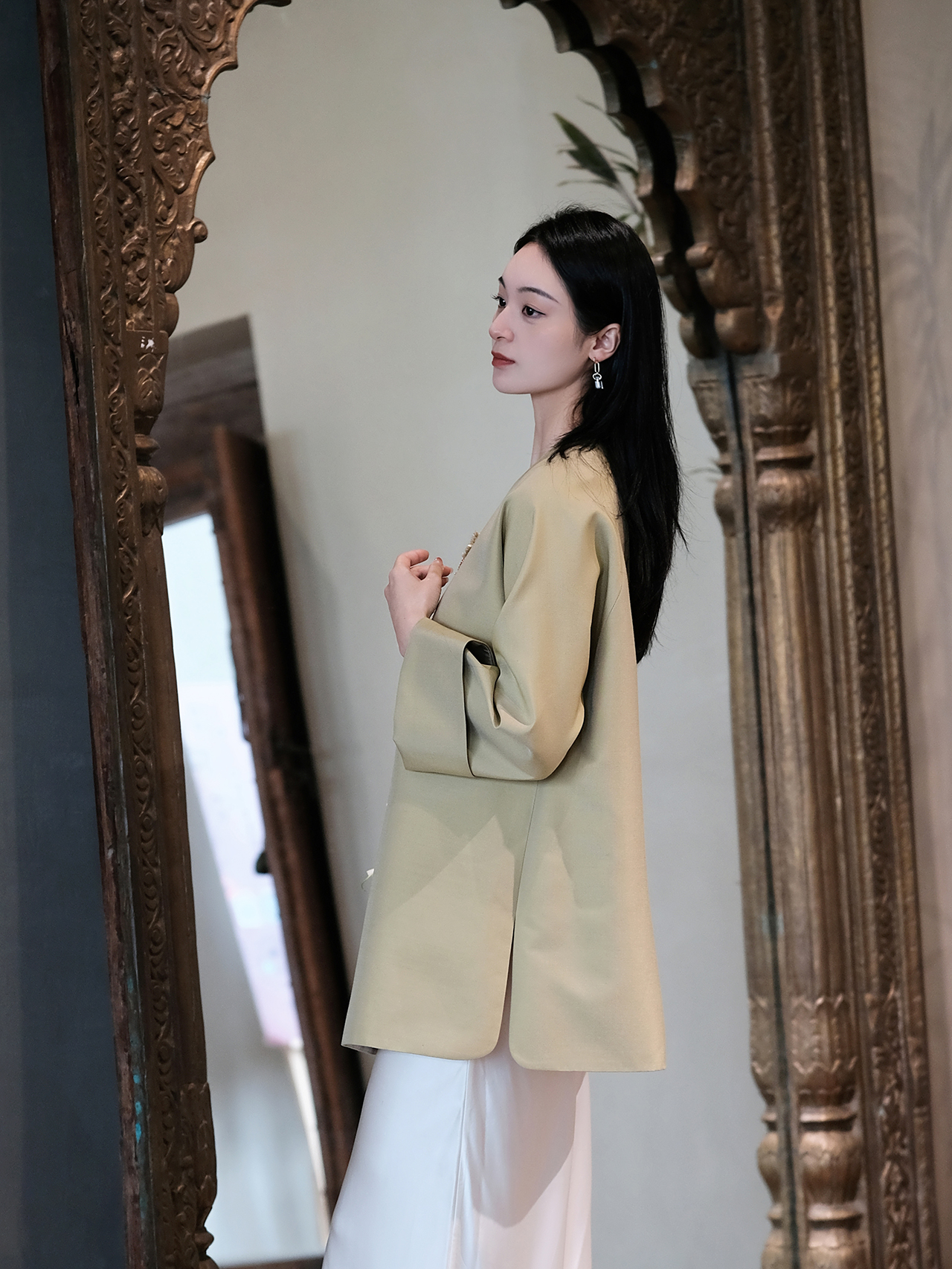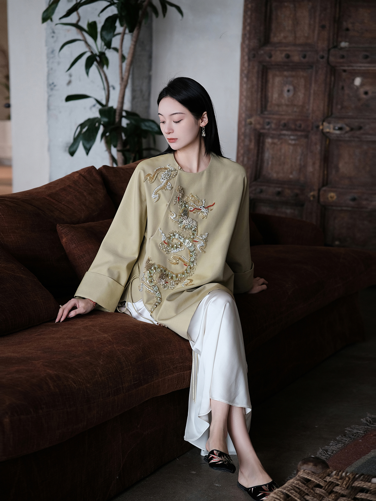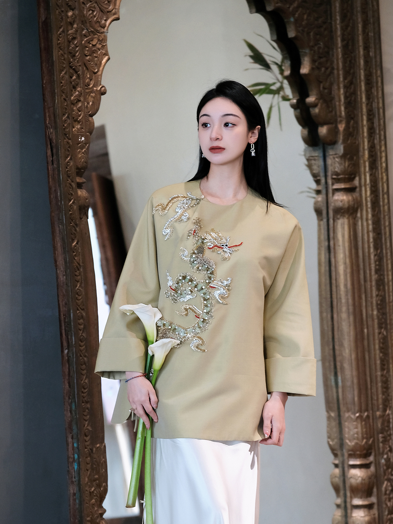 盛唐牡丹 |真丝提花梅兰竹菊偏襟上衣