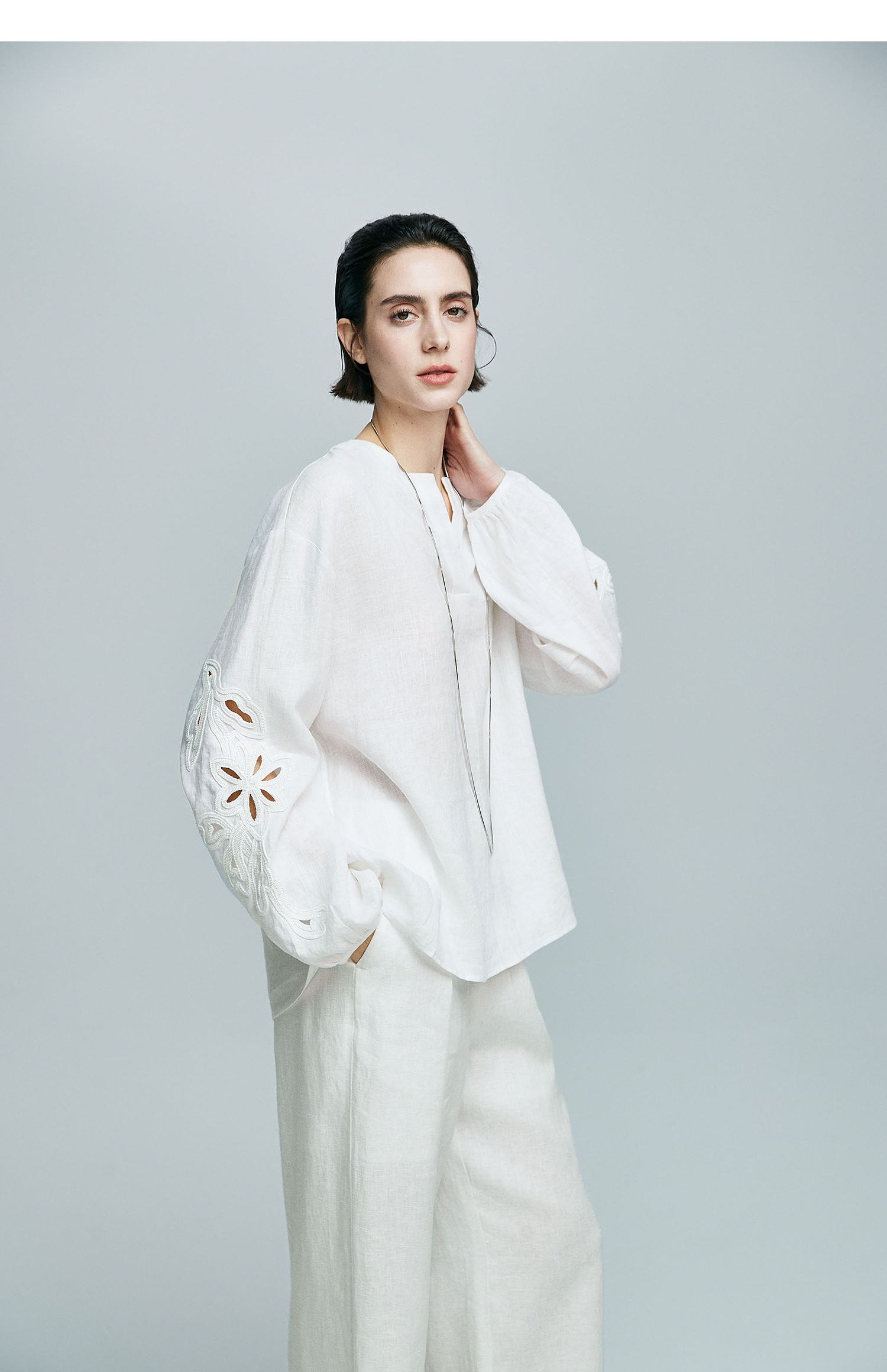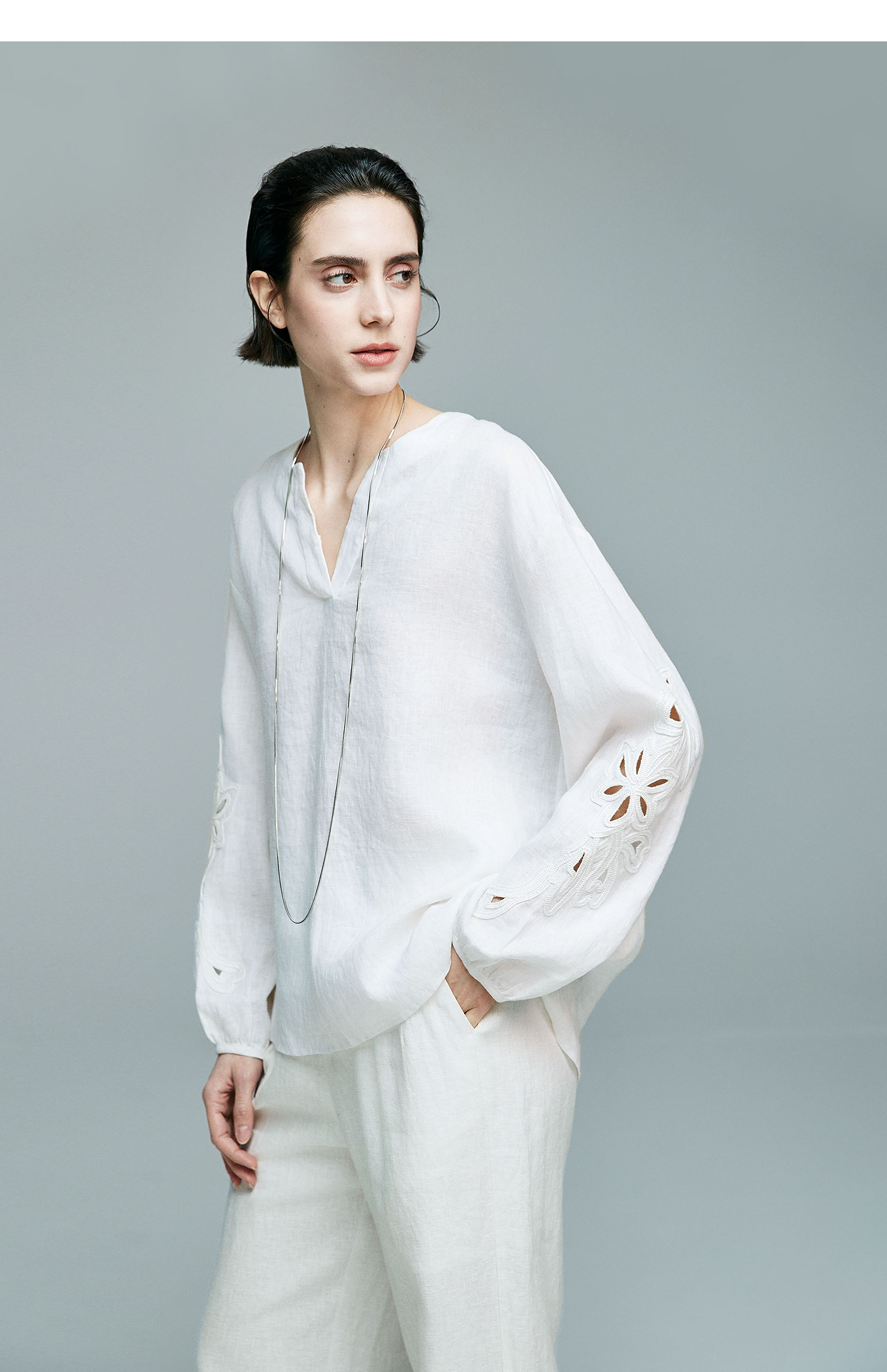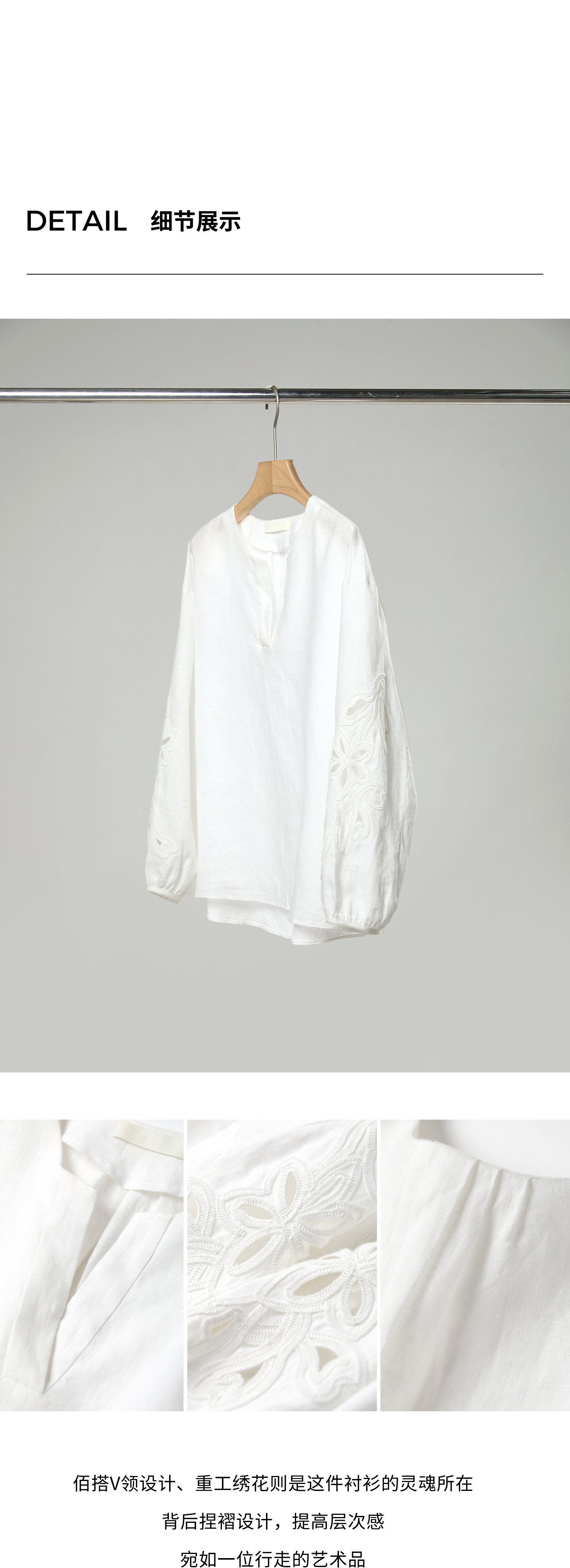 棉仓363604007-初棉绣花灯笼袖麻衬衫