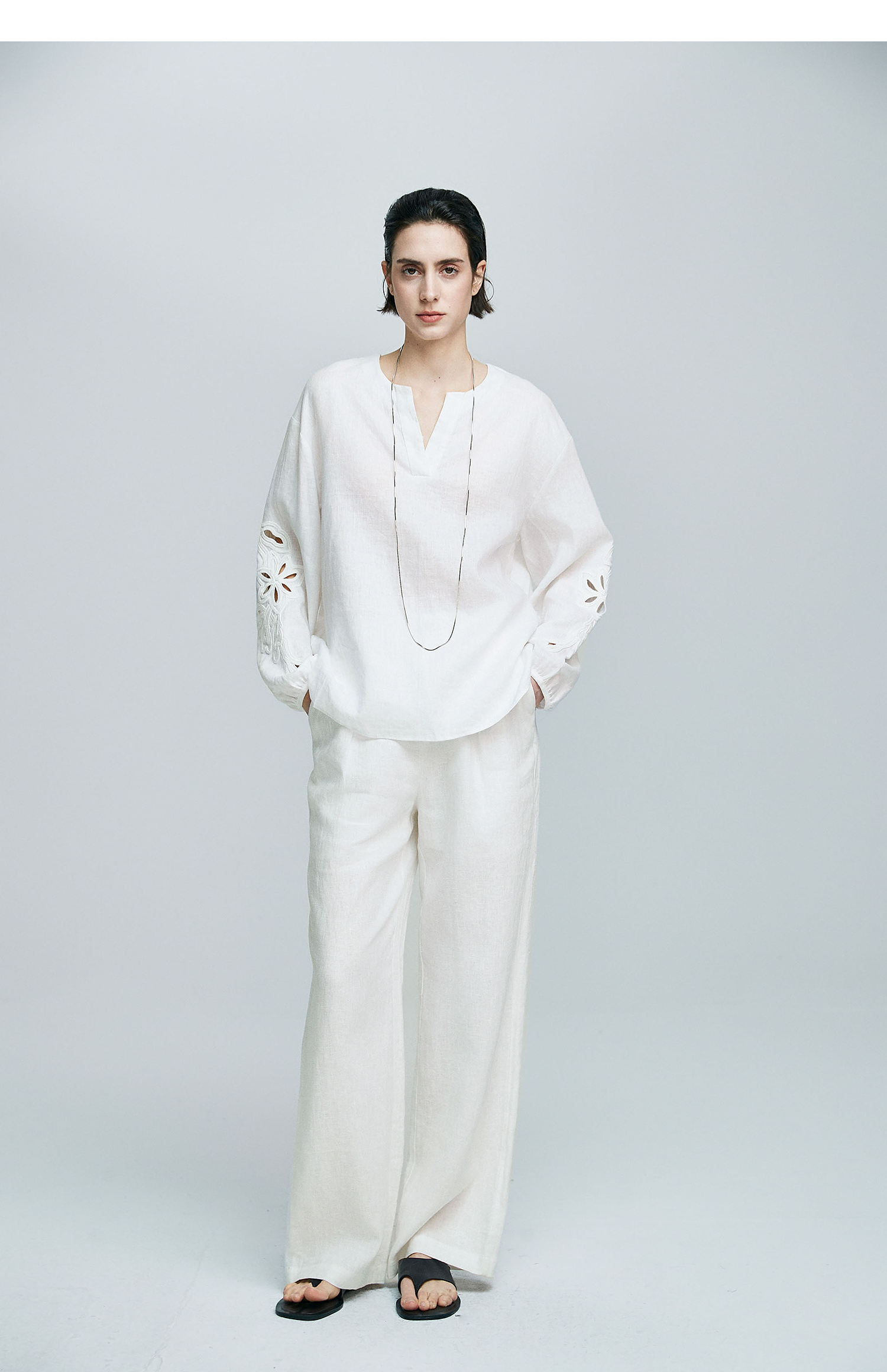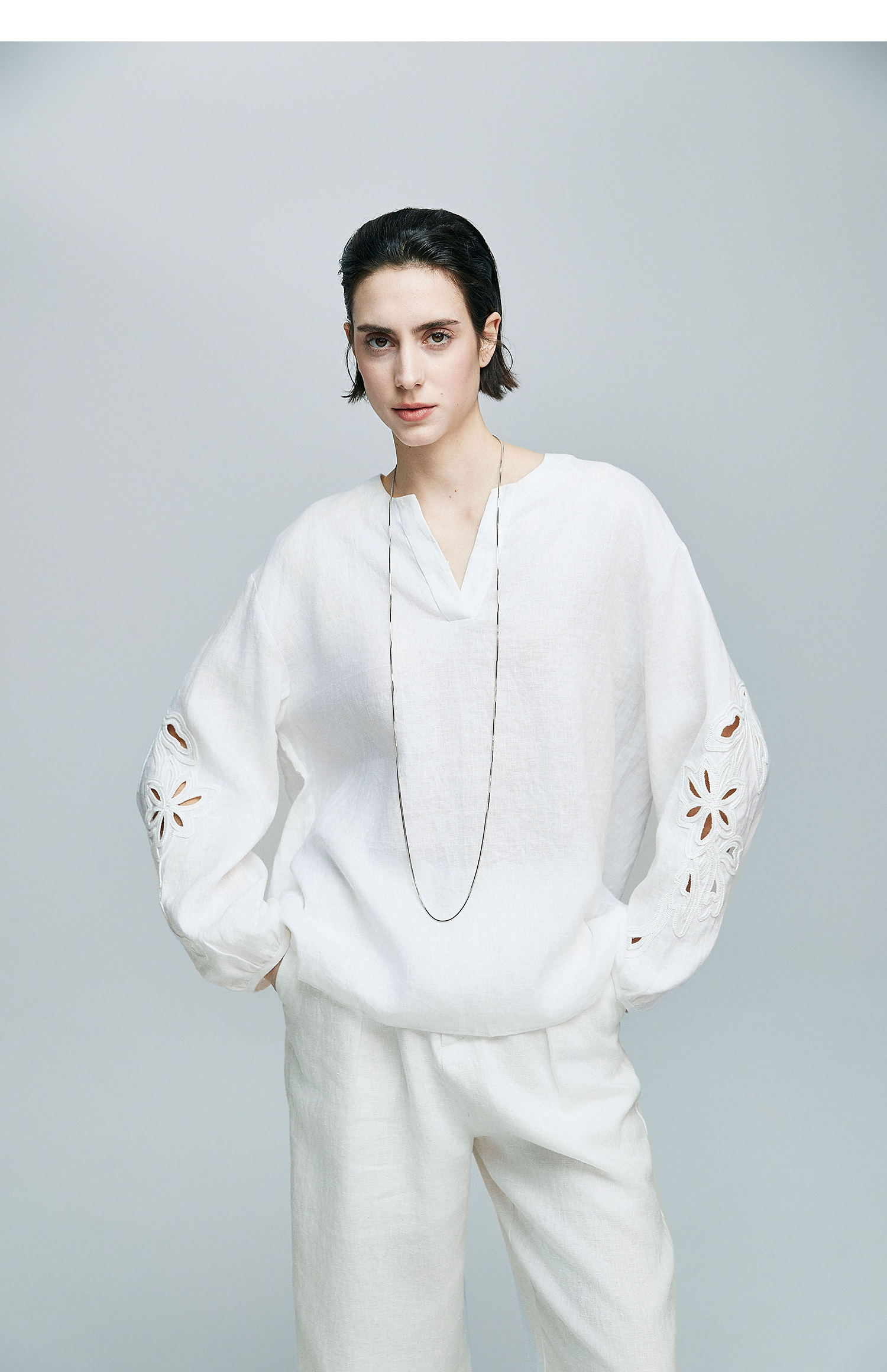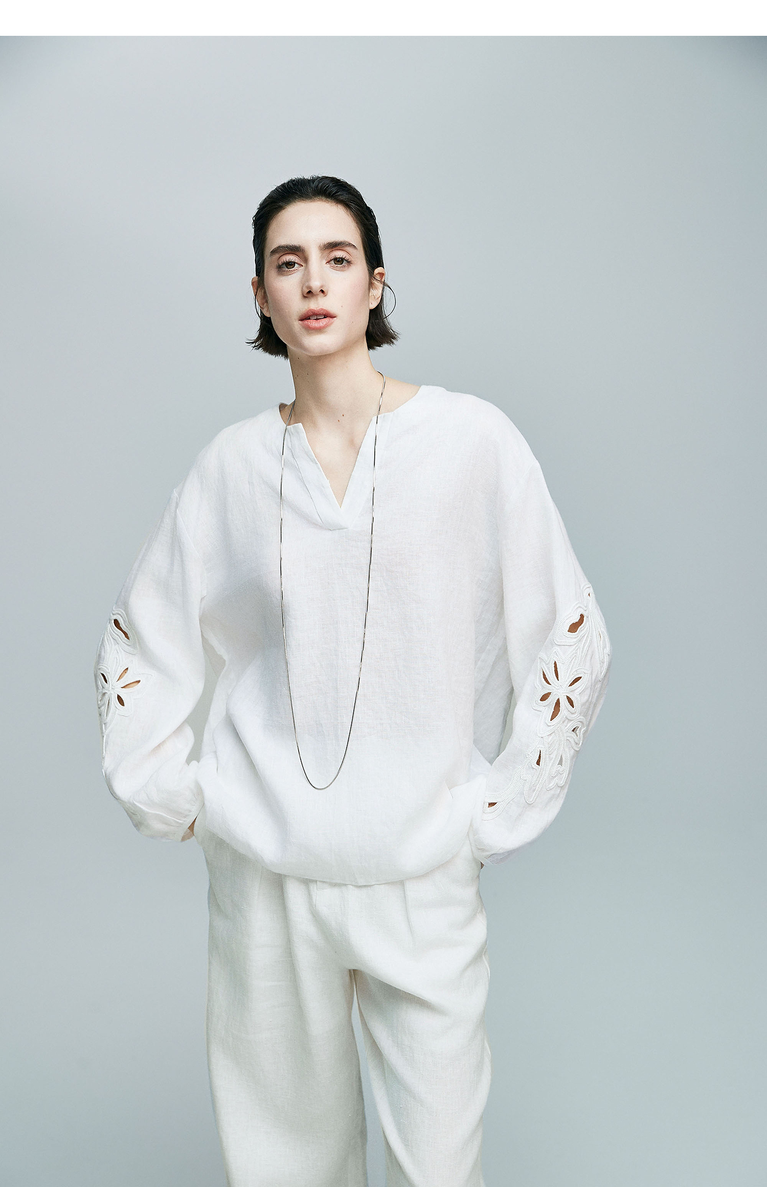 棉仓363604007-初棉绣花灯笼袖麻衬衫