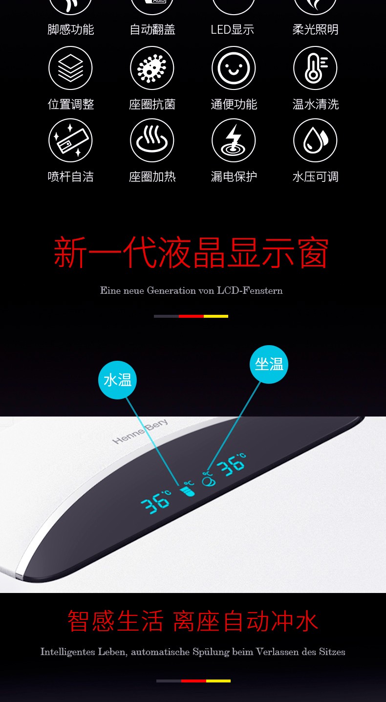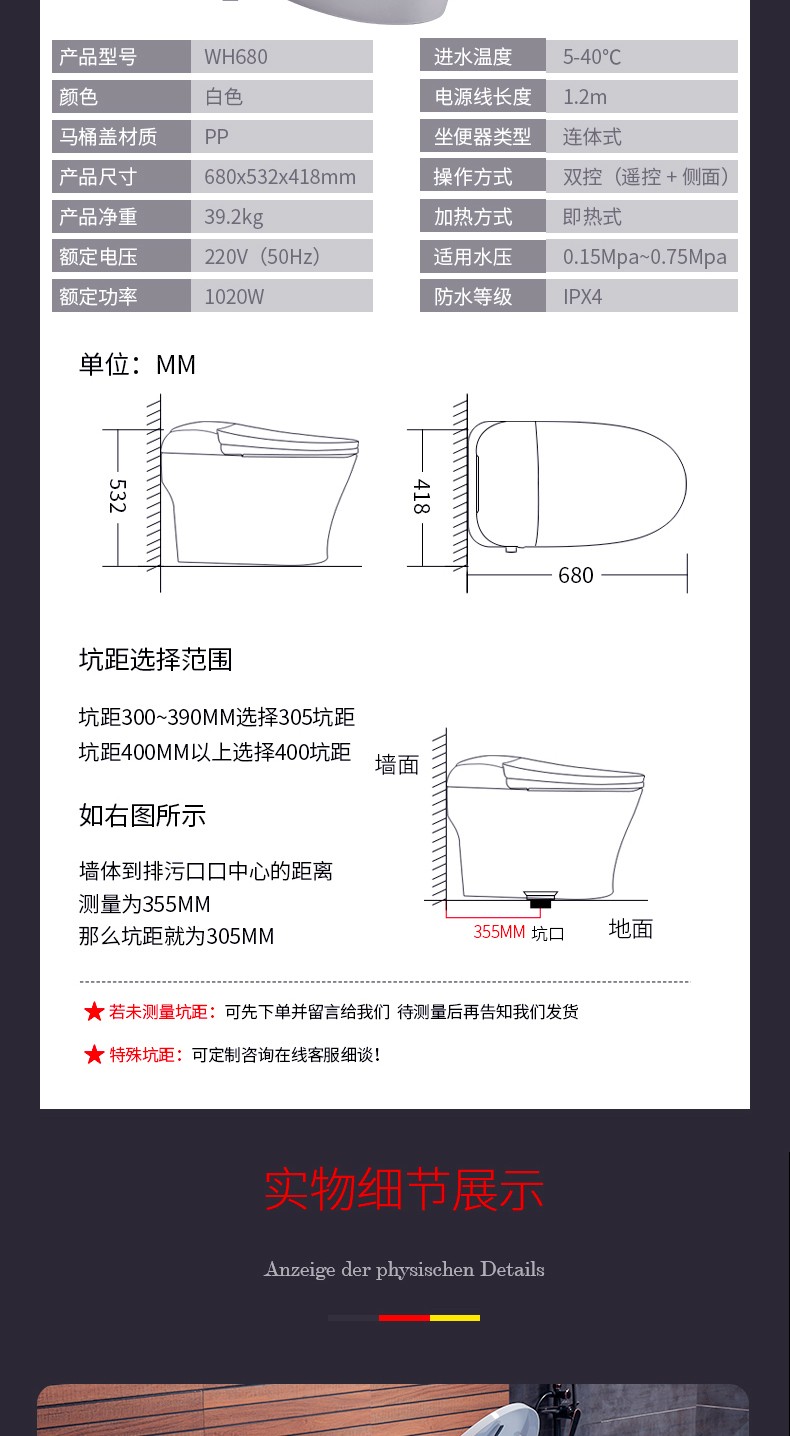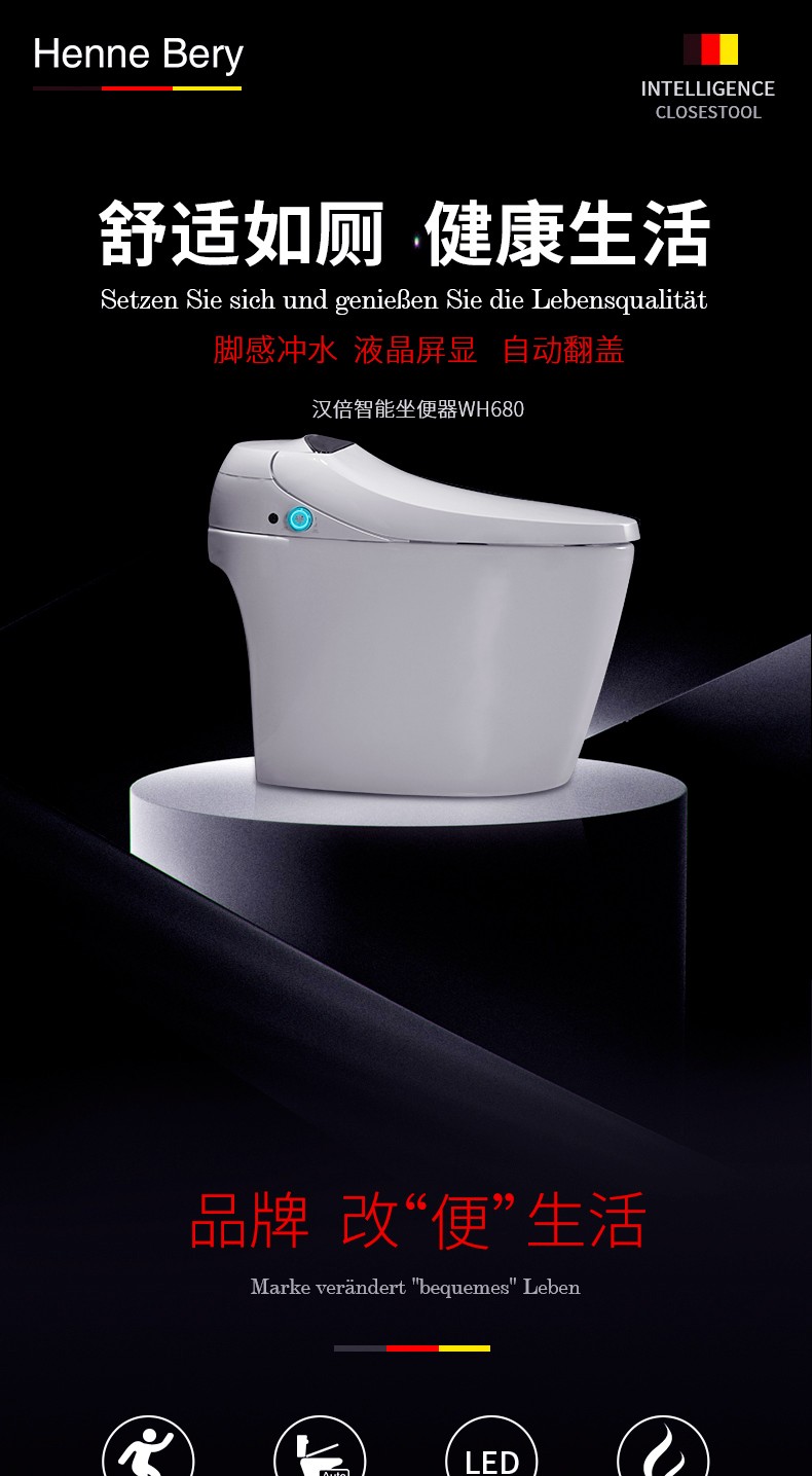 德国汉倍WH-680智能马桶除菌抗菌即热式自动翻盖感应冲水全自动一体式坐便器