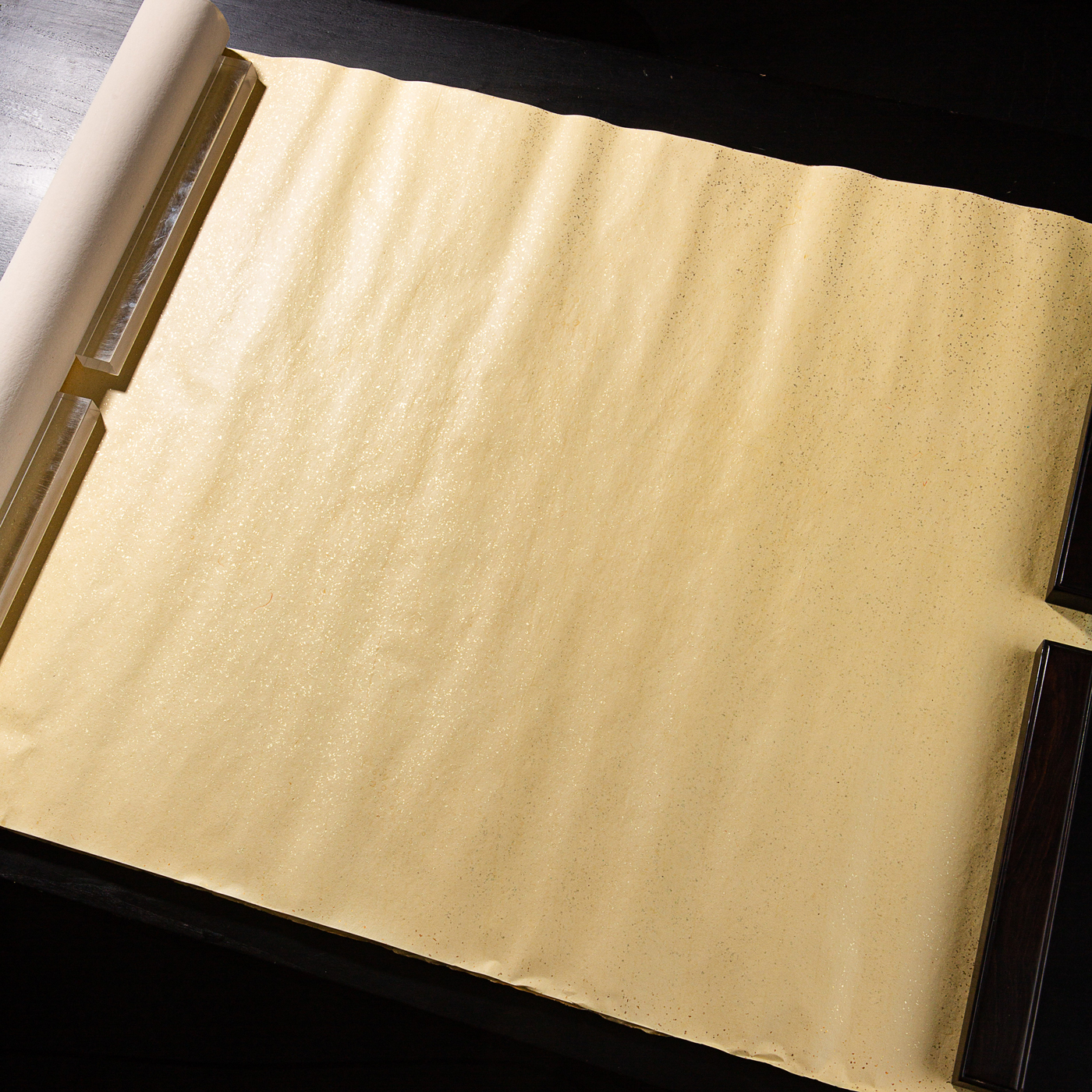 60-70年代A级四尺米黄细金笺,一卷19张,纸色雅致,洒真金高贵亮丽,质地紧实细腻,品相保存完美,存世稀少,极为难得。