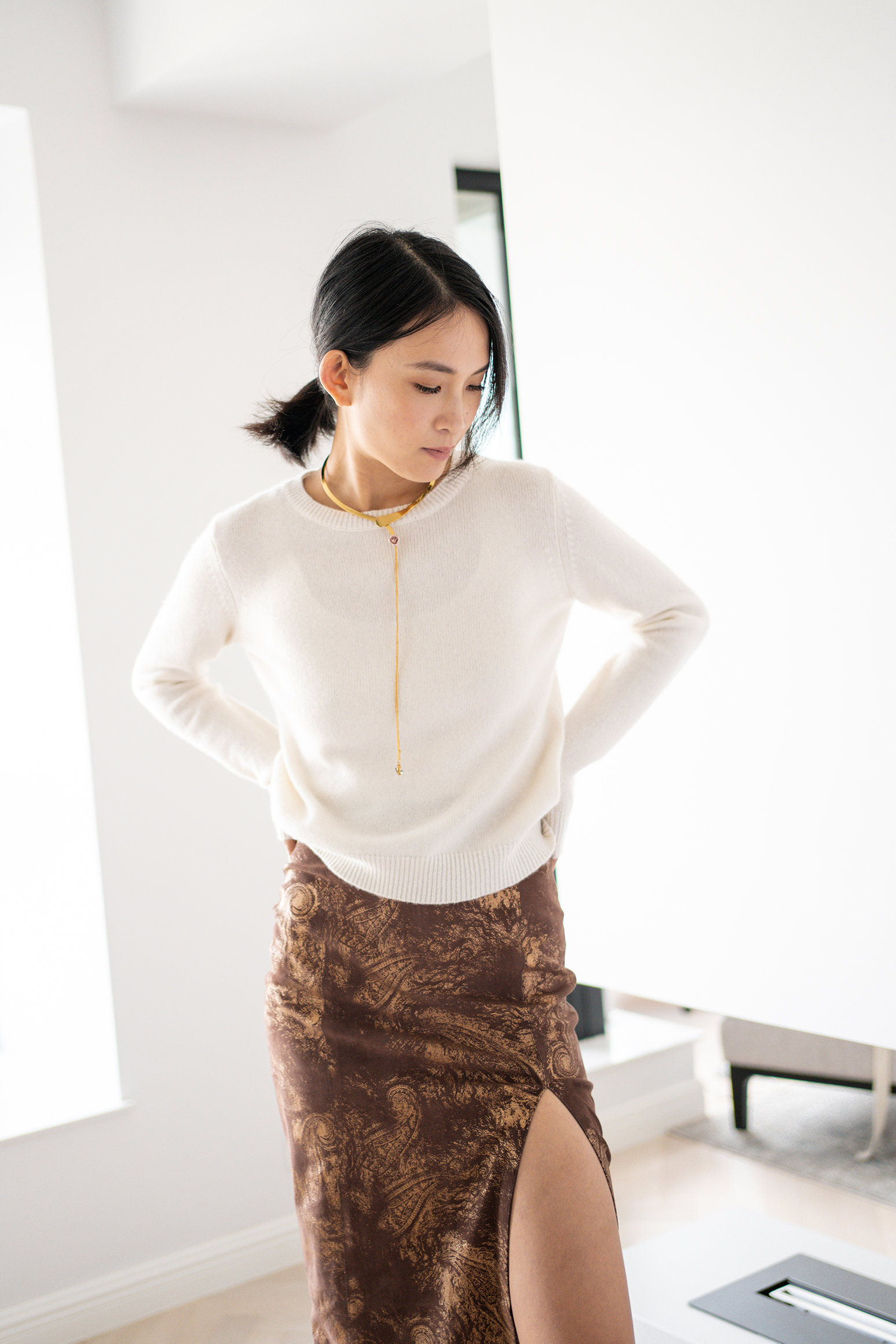 CG|Painting Leather A-line Skirt [金纹真皮A字裙]