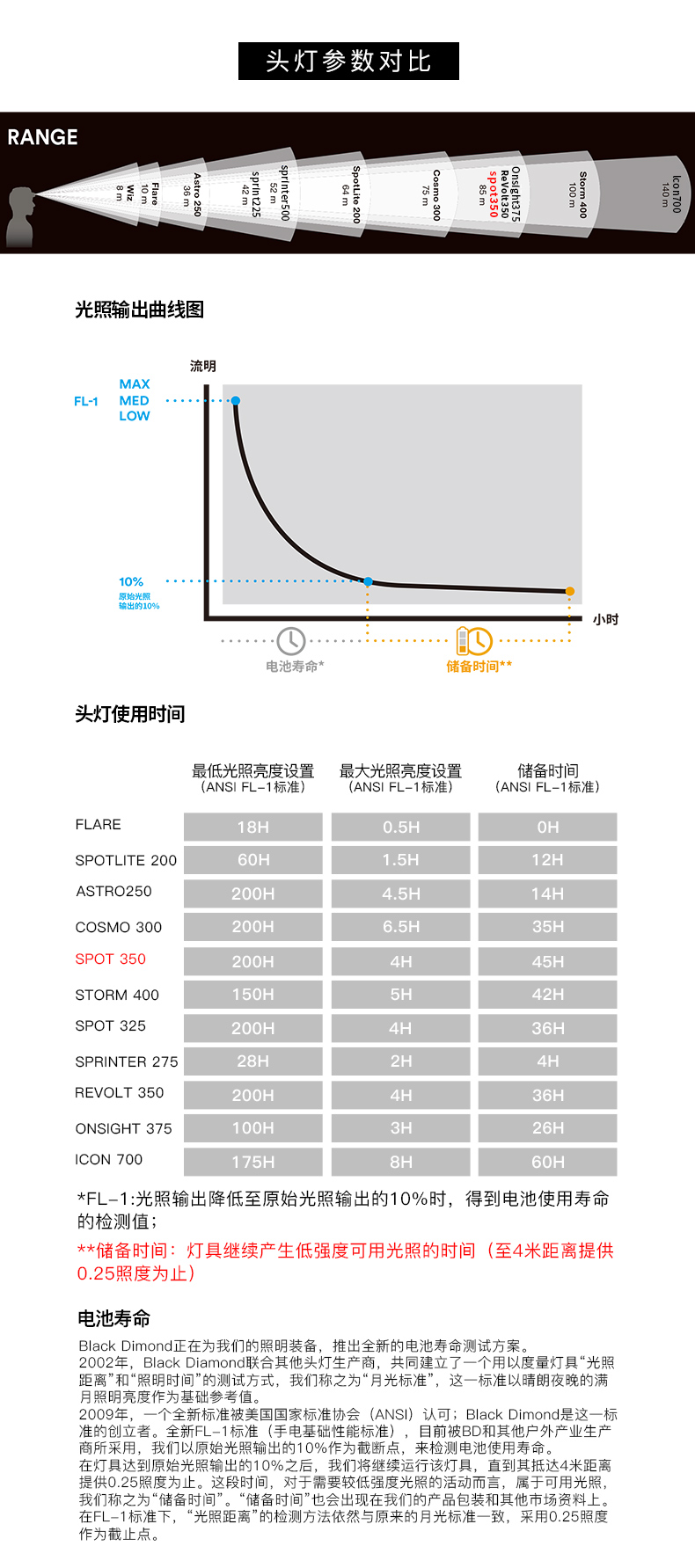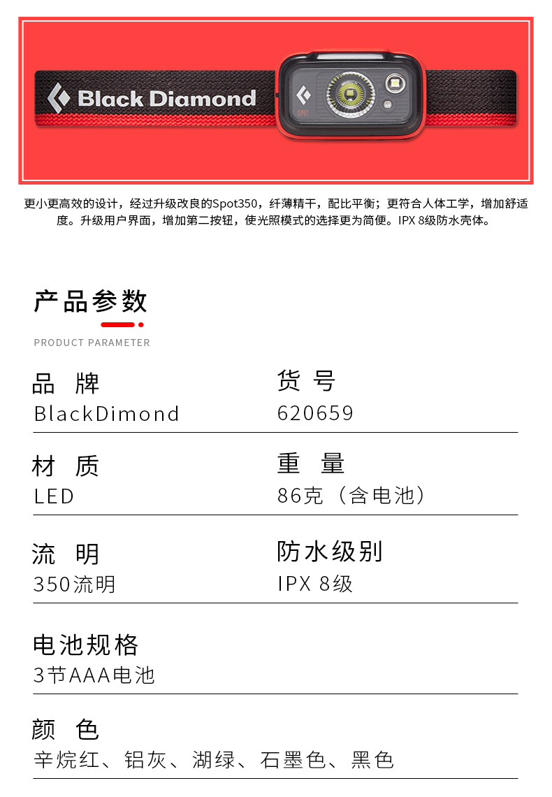 BlackDiamond黑钻BD头灯户外头戴式led灯强光钓鱼夜跑徒步 620659 spot350