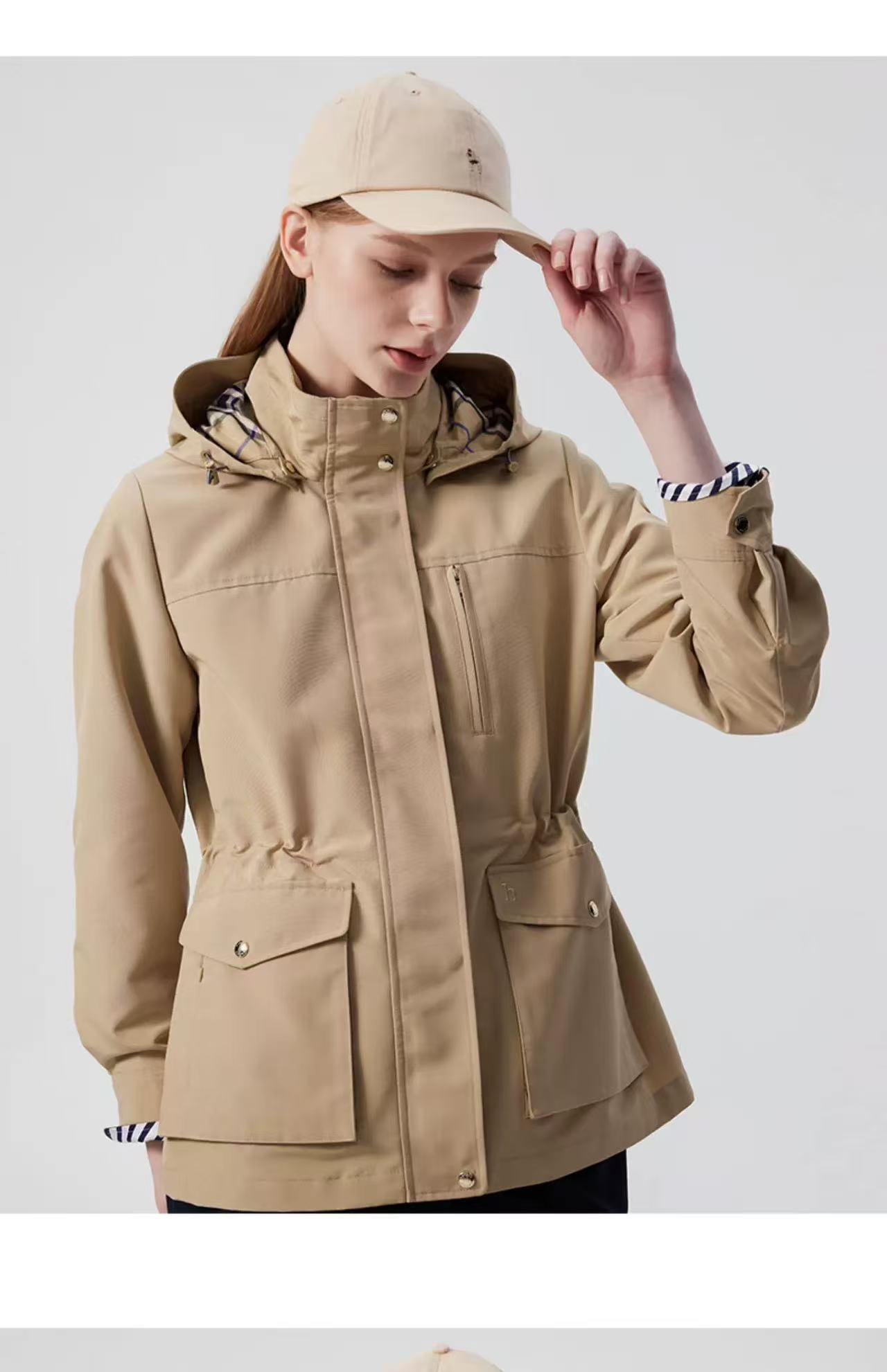 【sx1】女士新款时尚通勤连帽风衣外套!!