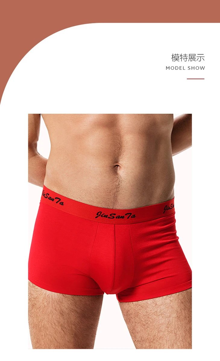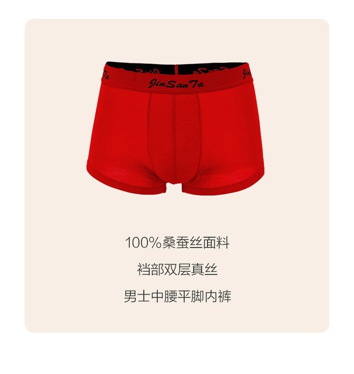 金三塔【2条装】新品真丝内裤男红色桑蚕丝男士平角裤红品系列(私密物品不支持退换) 3NZM064