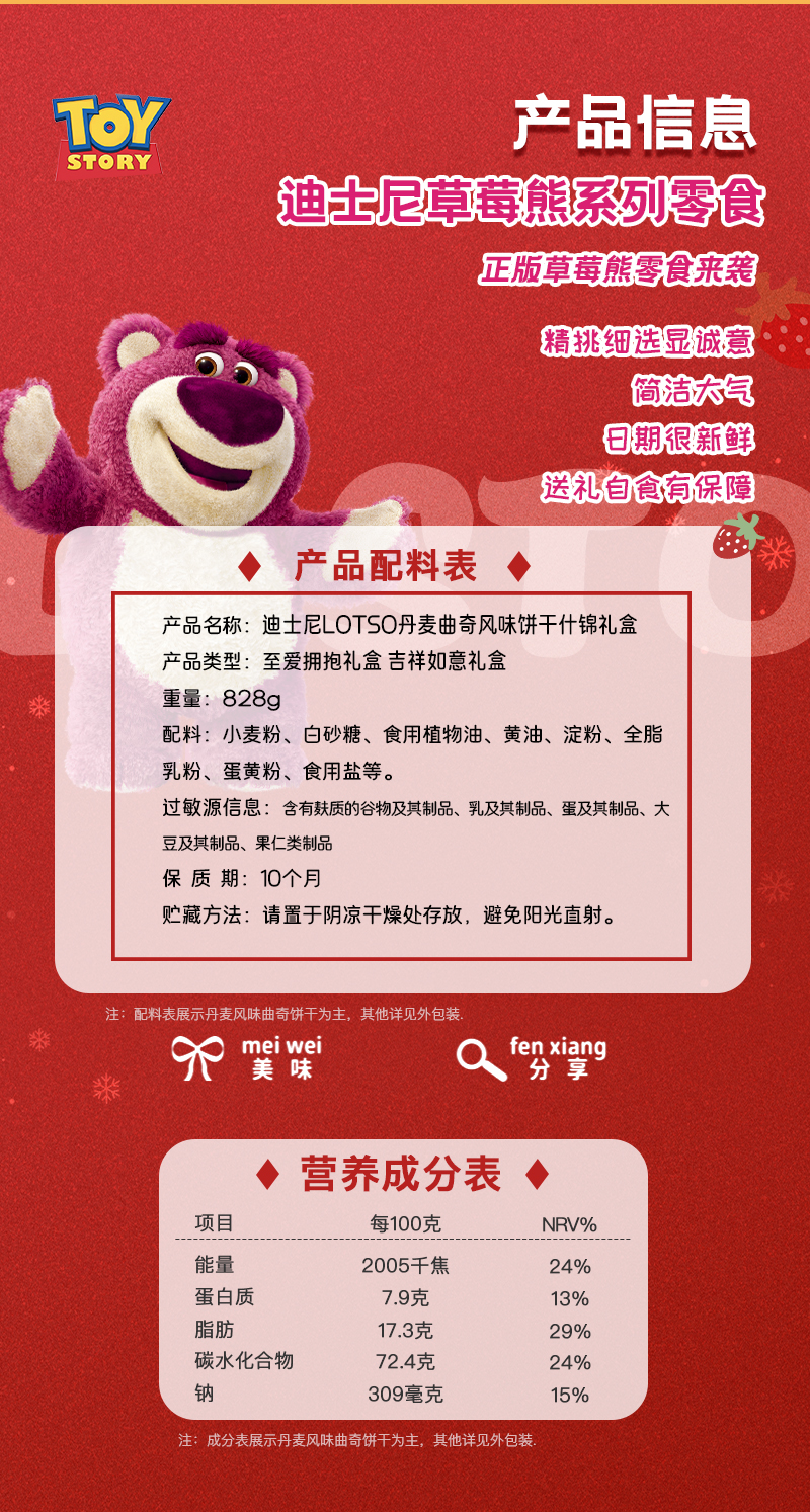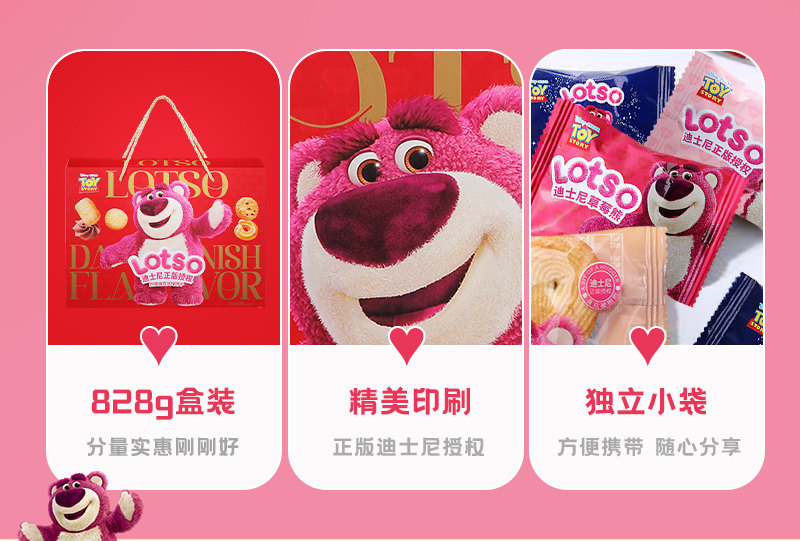 迪士尼草莓熊丹麦曲奇风味饼干828g(至爱拥抱)