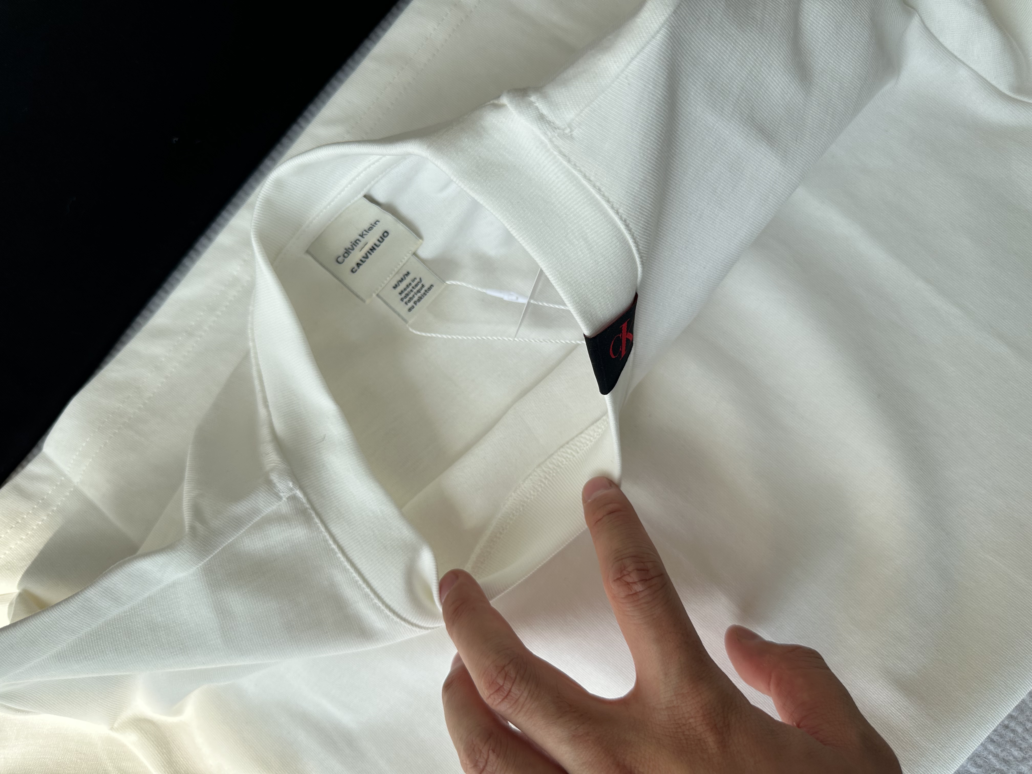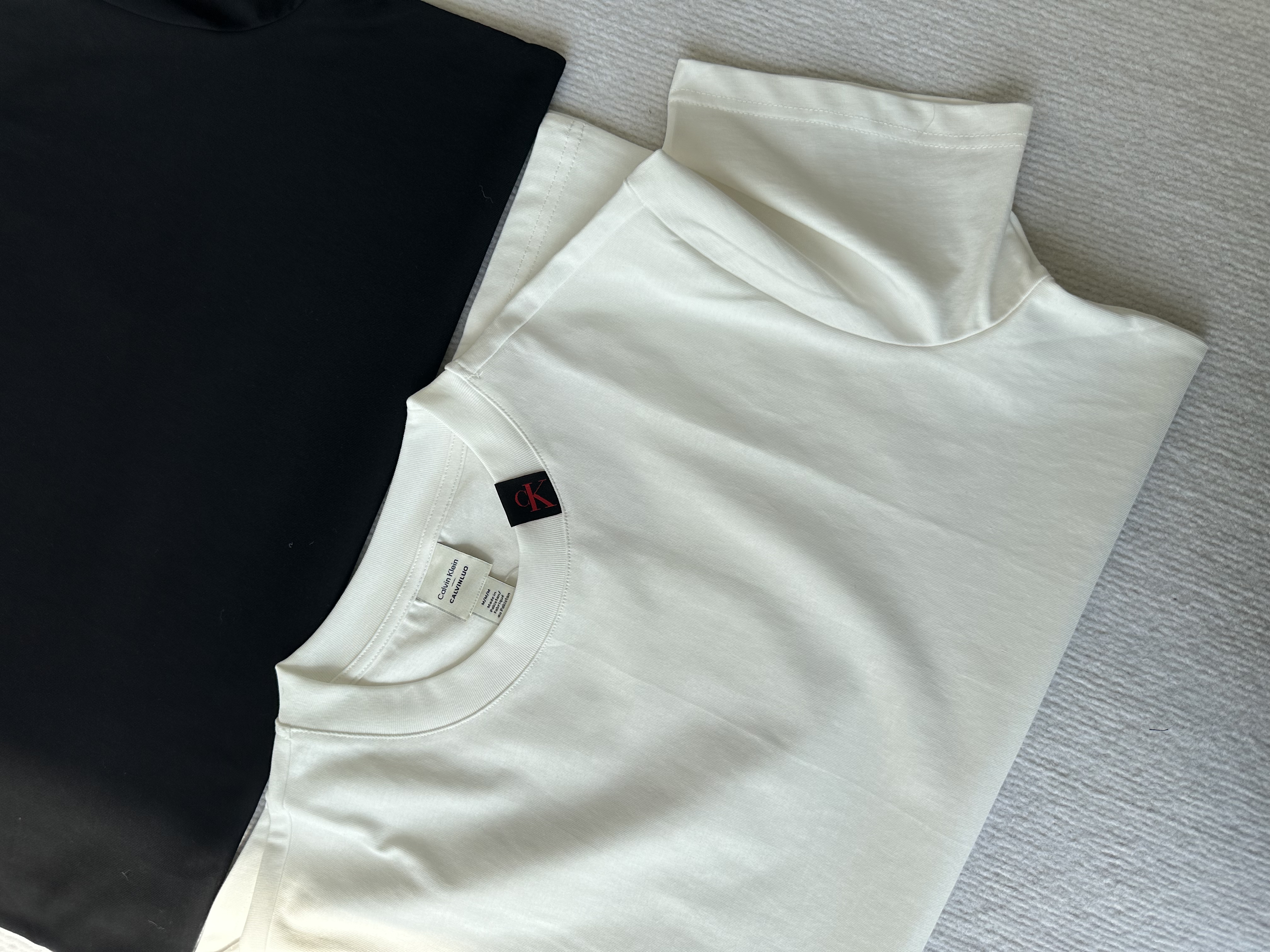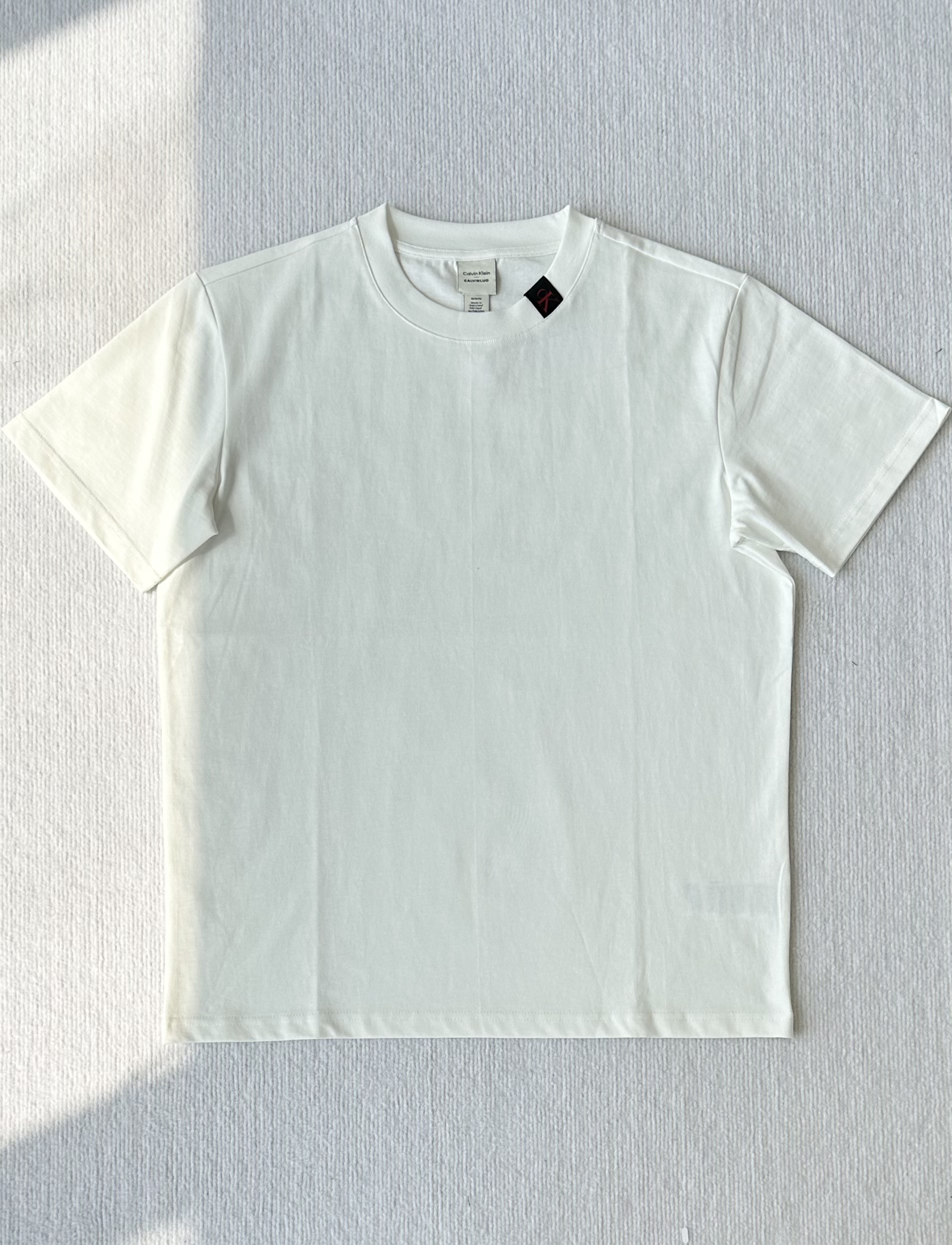 简单基础设计不挑人!经典百搭领口饰有黑色字母ck贴布;