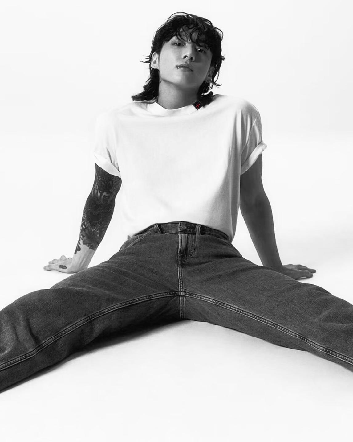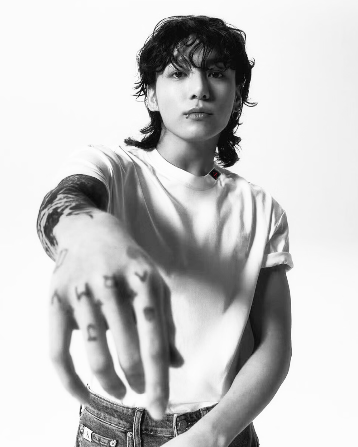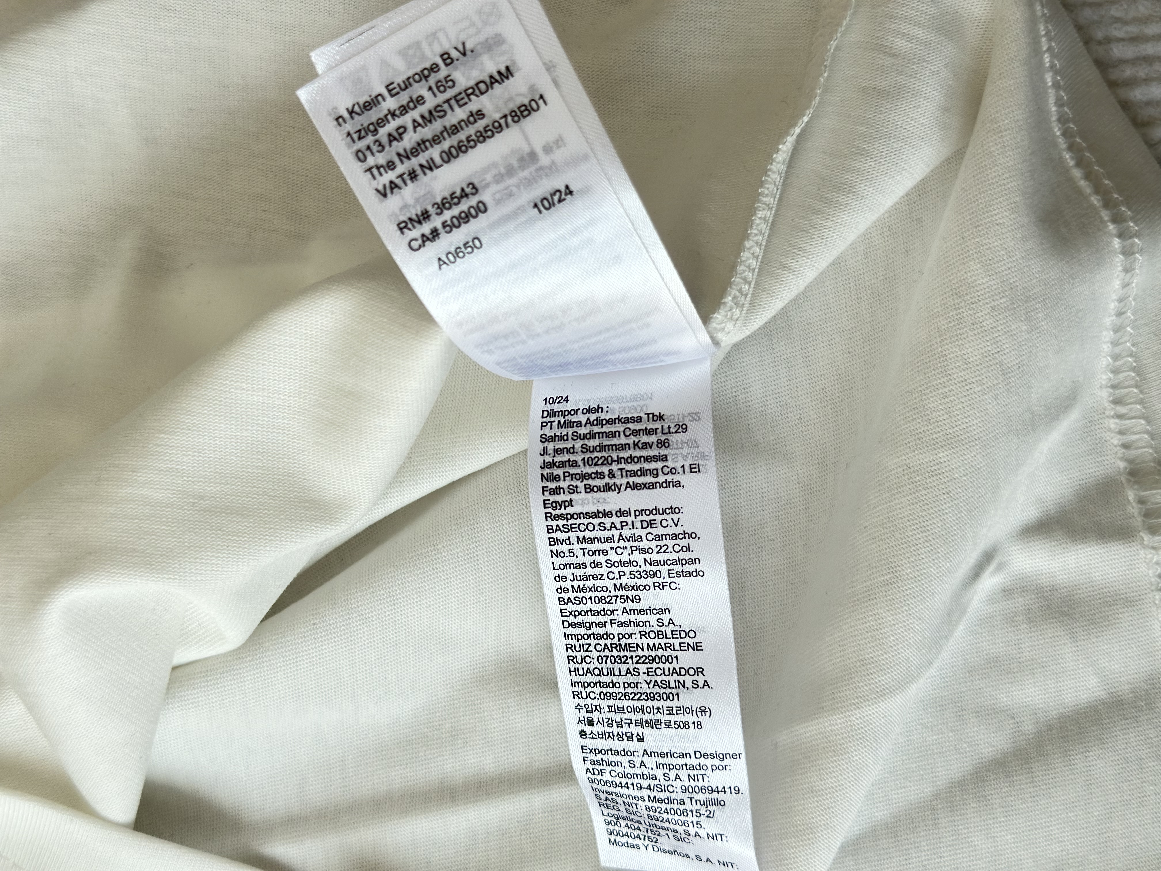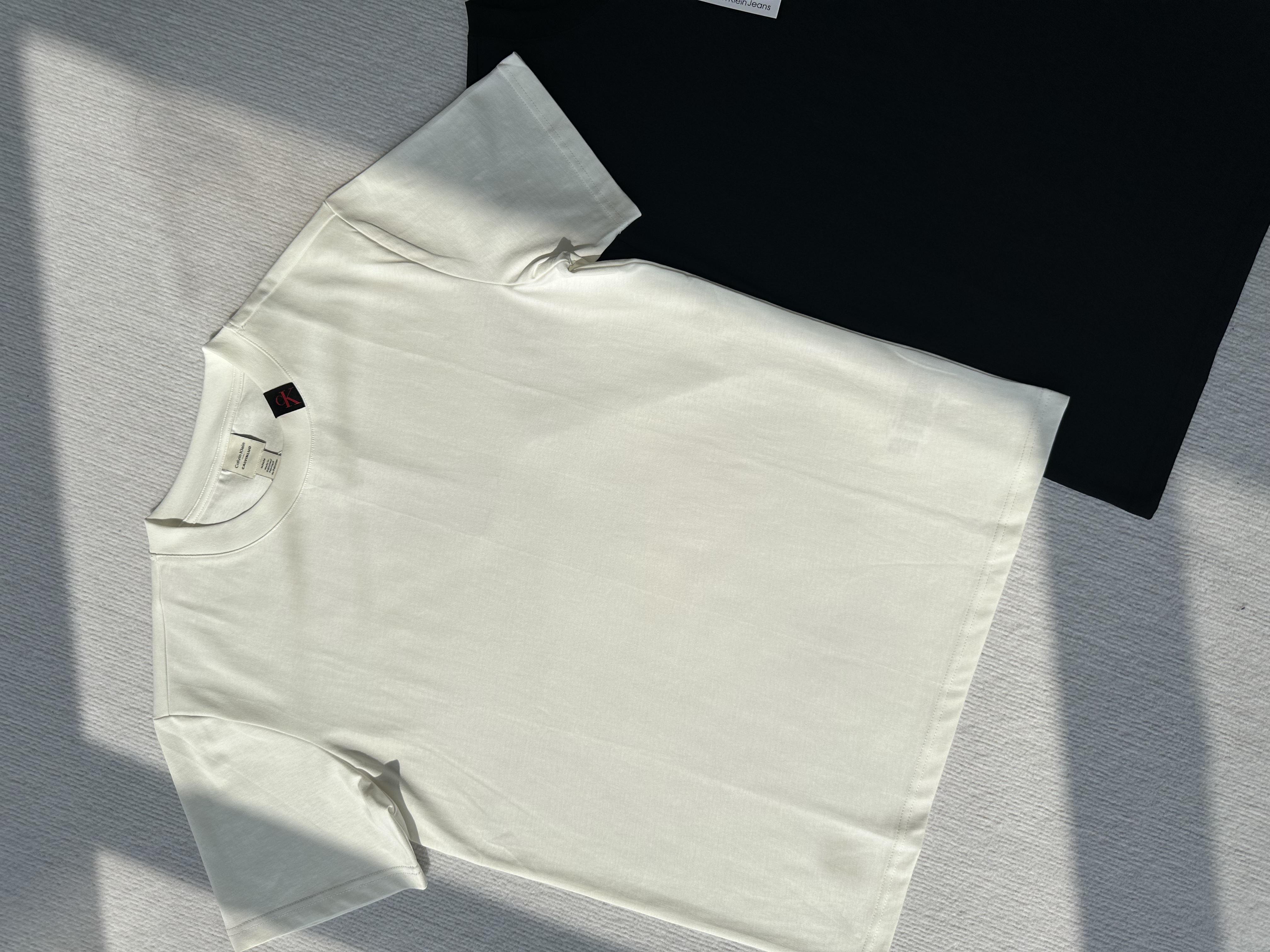 简单基础设计不挑人!经典百搭领口饰有黑色字母ck贴布;