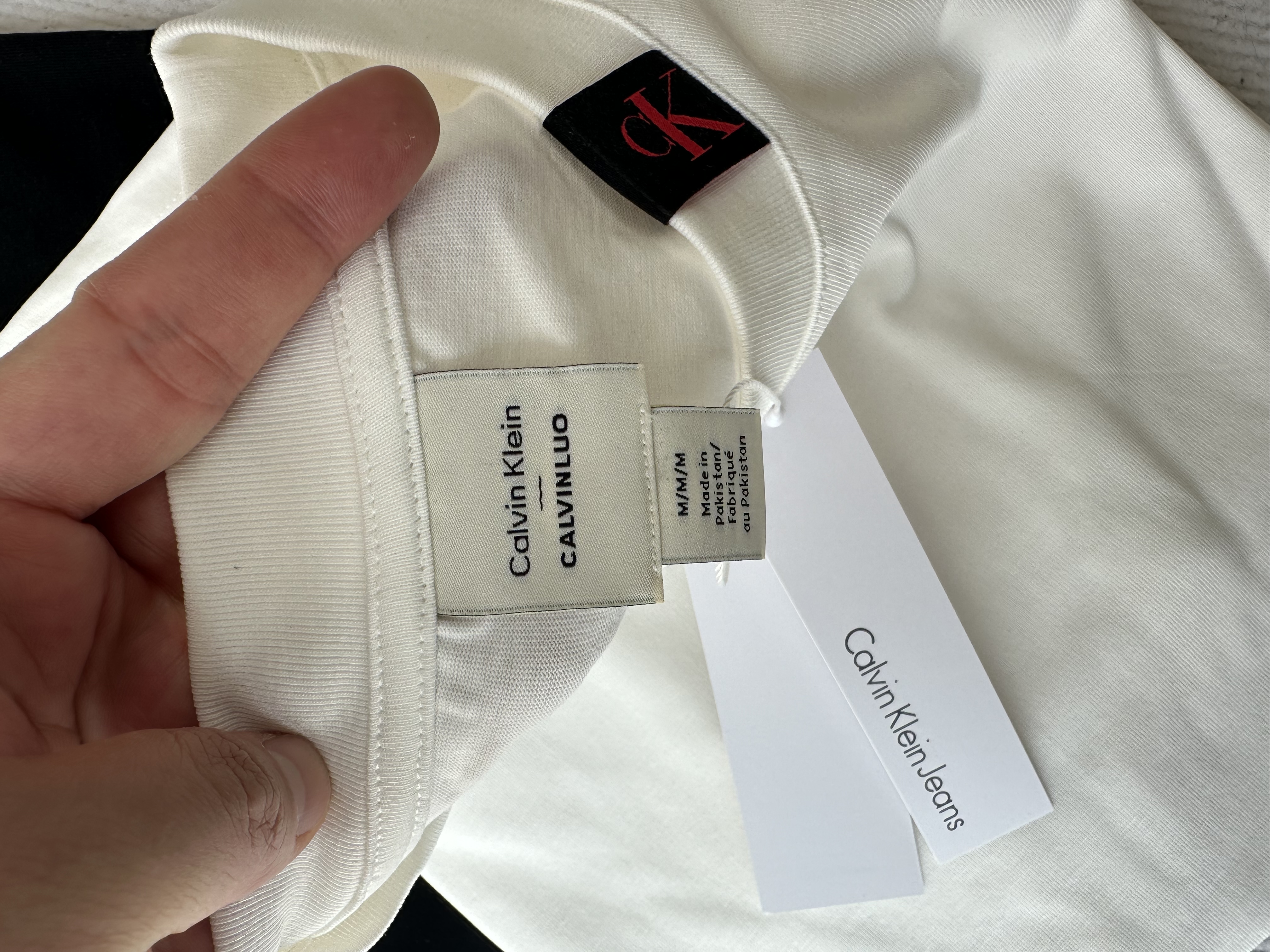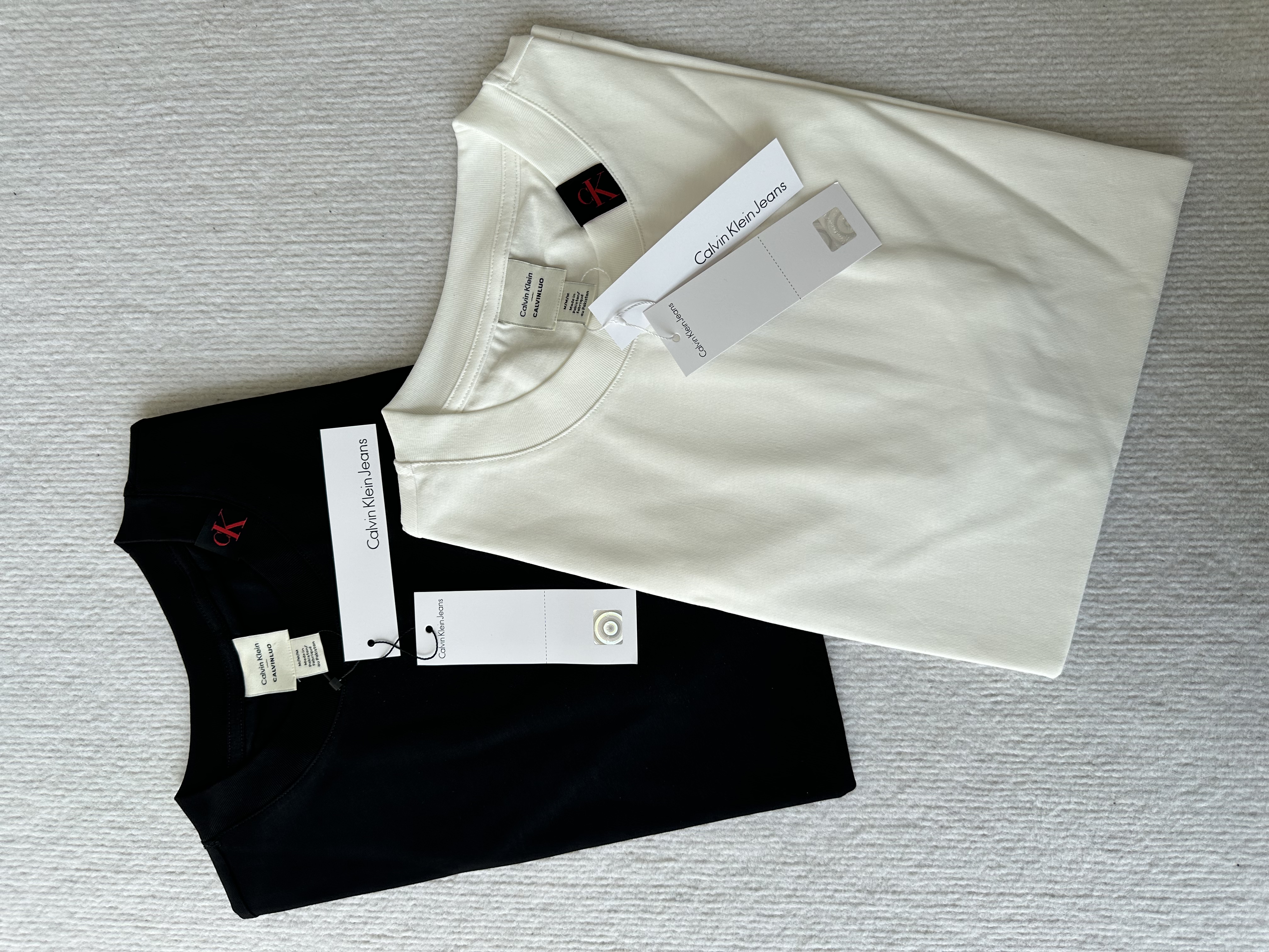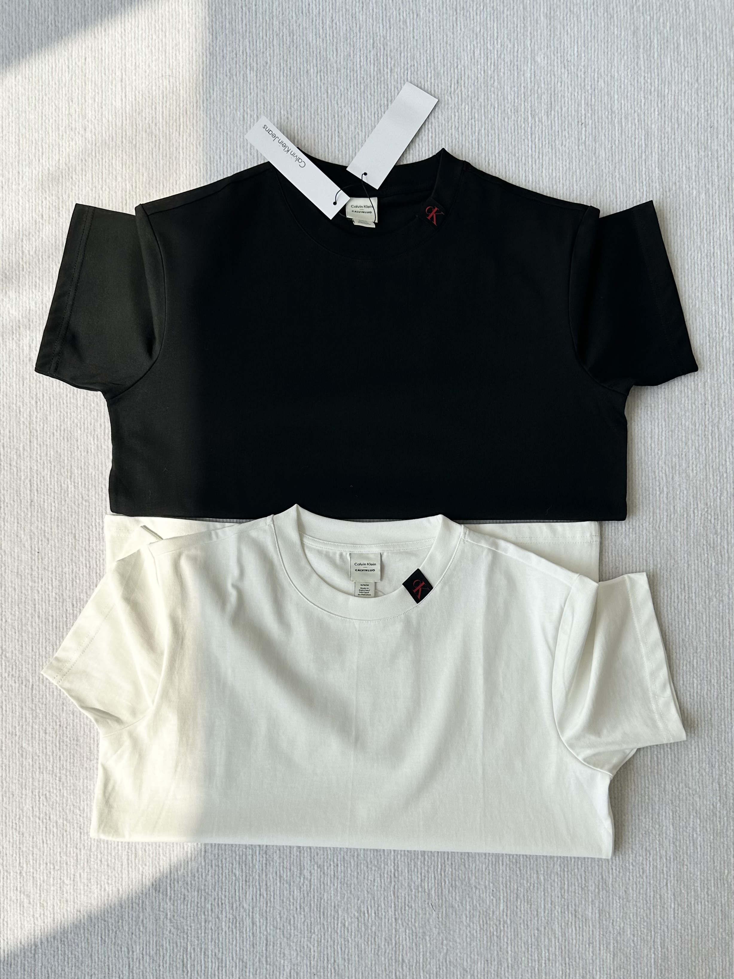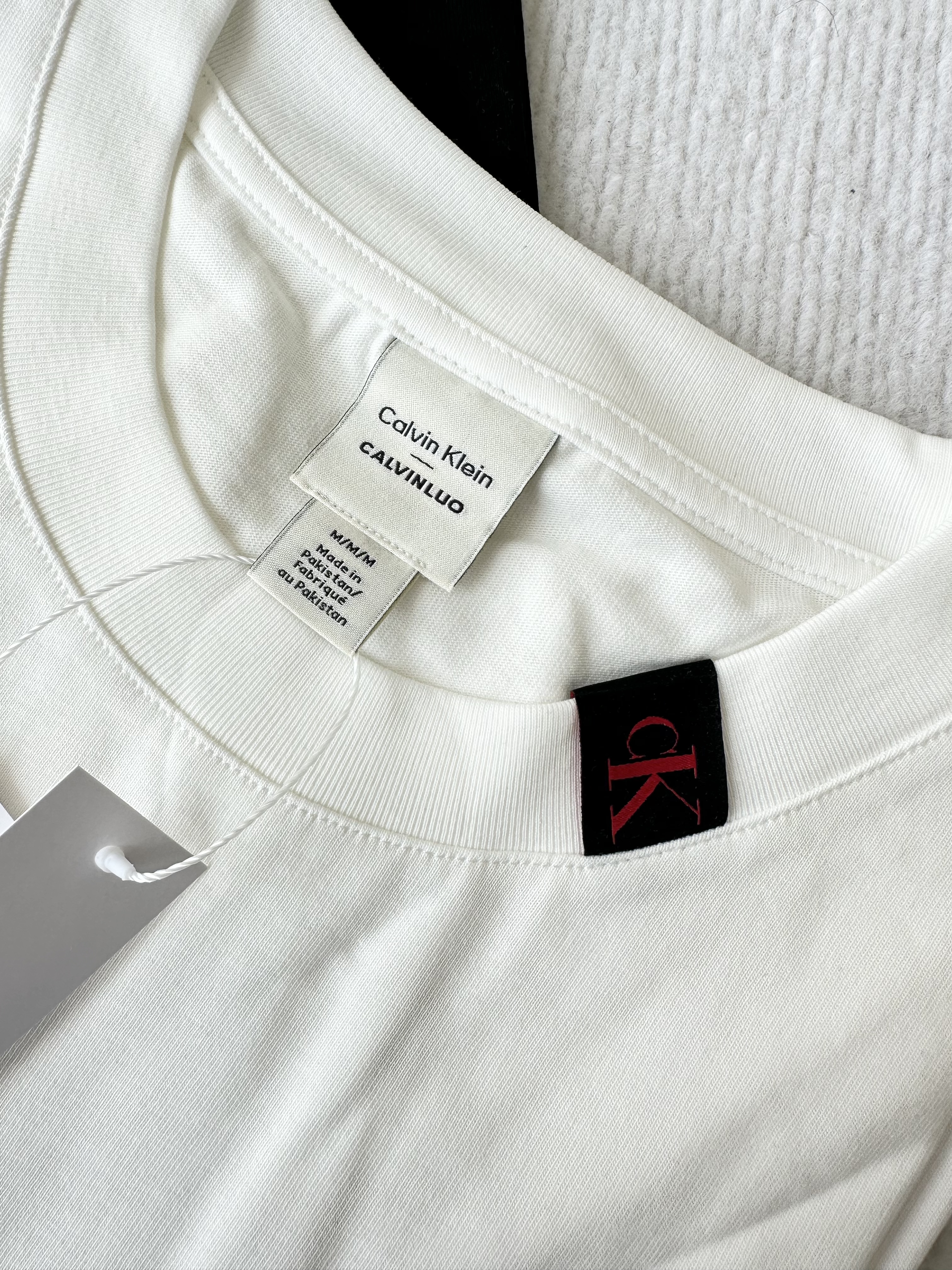 清仓,黑色s120斤内!!女士可穿!!处理超厚克重全棉CK凯文克莱男女同款夏季 领口红标短袖T恤 领口红标短袖