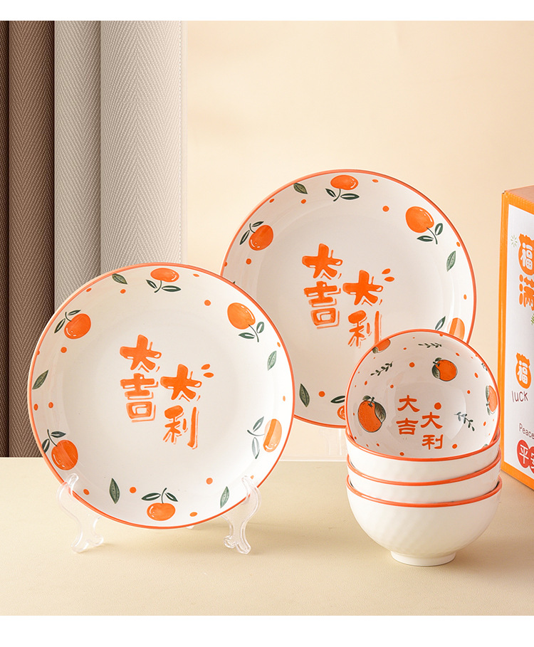 【柿事如意❗️新年喜庆餐具套装】马年开运,动动碗筷,柿事如意,大吉大利❗️陶瓷碗盘小礼品伴手礼盒,马年送礼新年礼盒年货礼盒新年礼盒年货礼盒