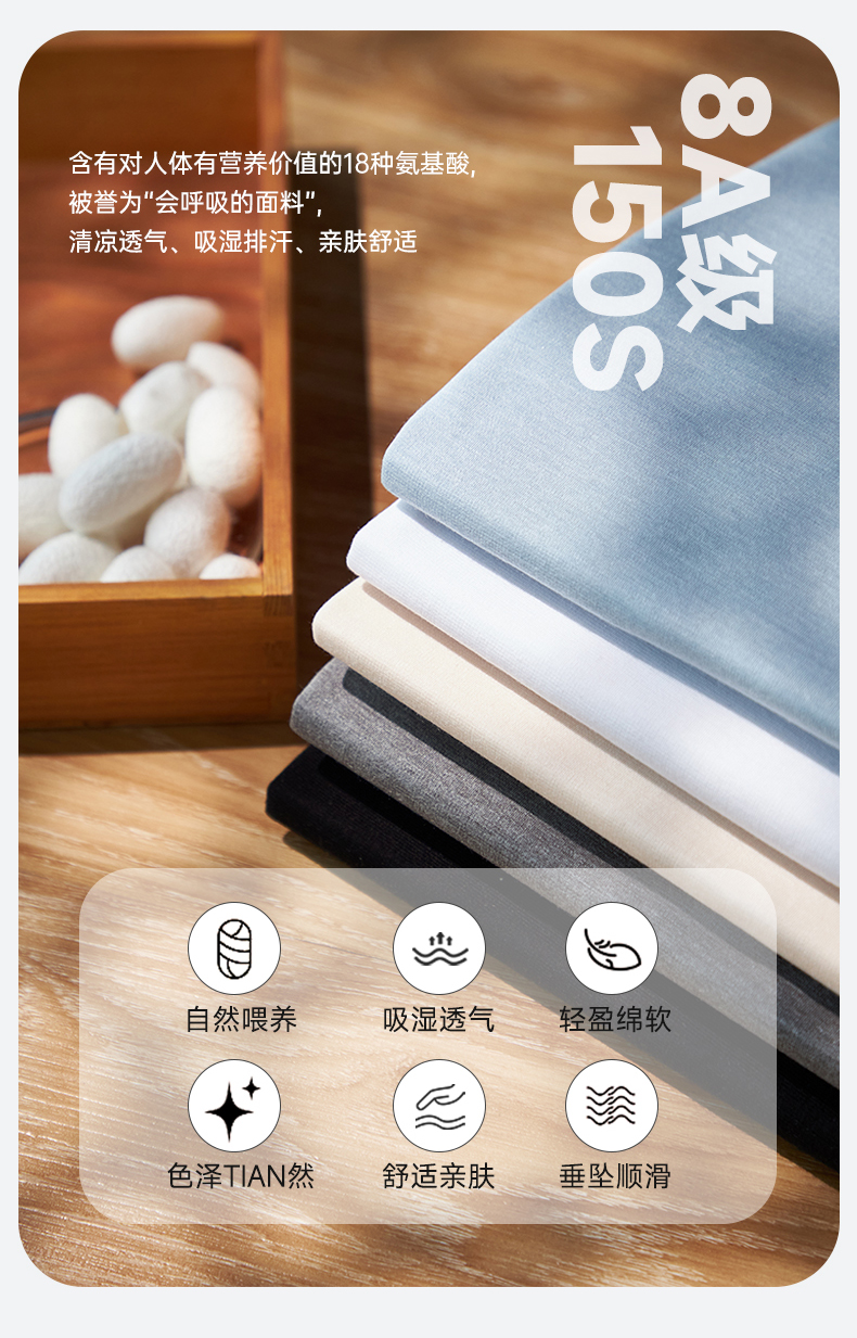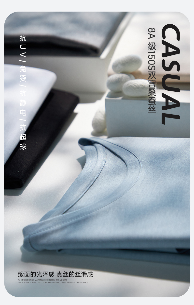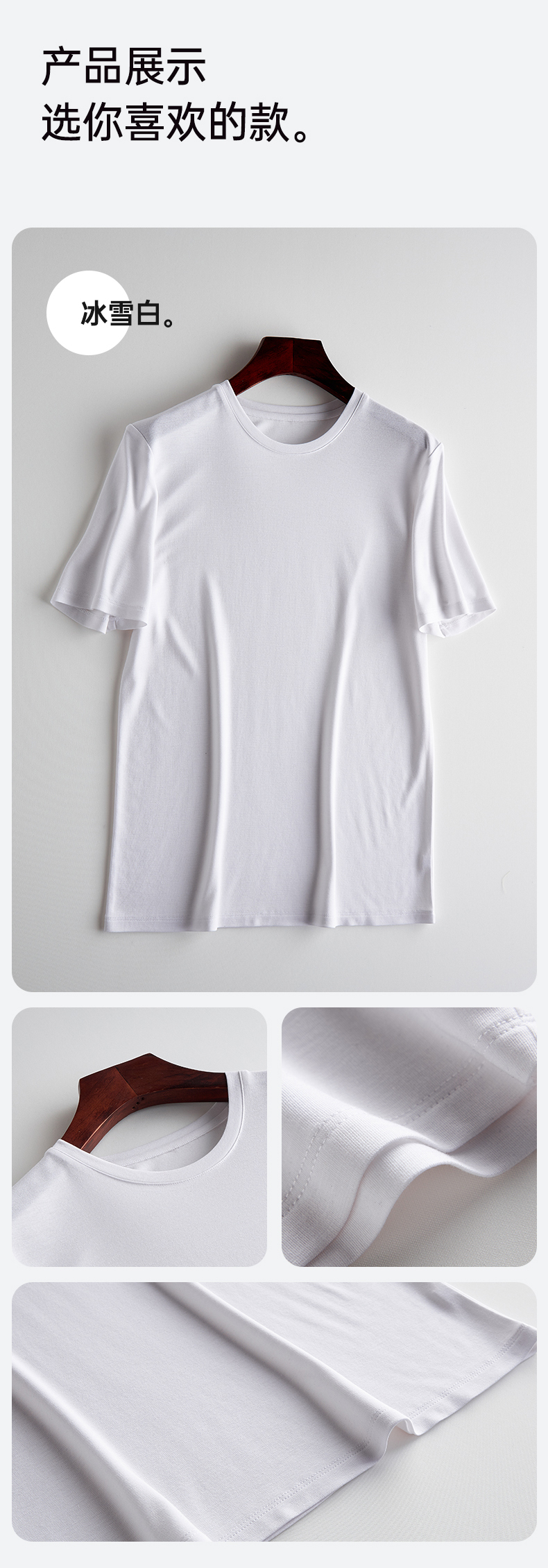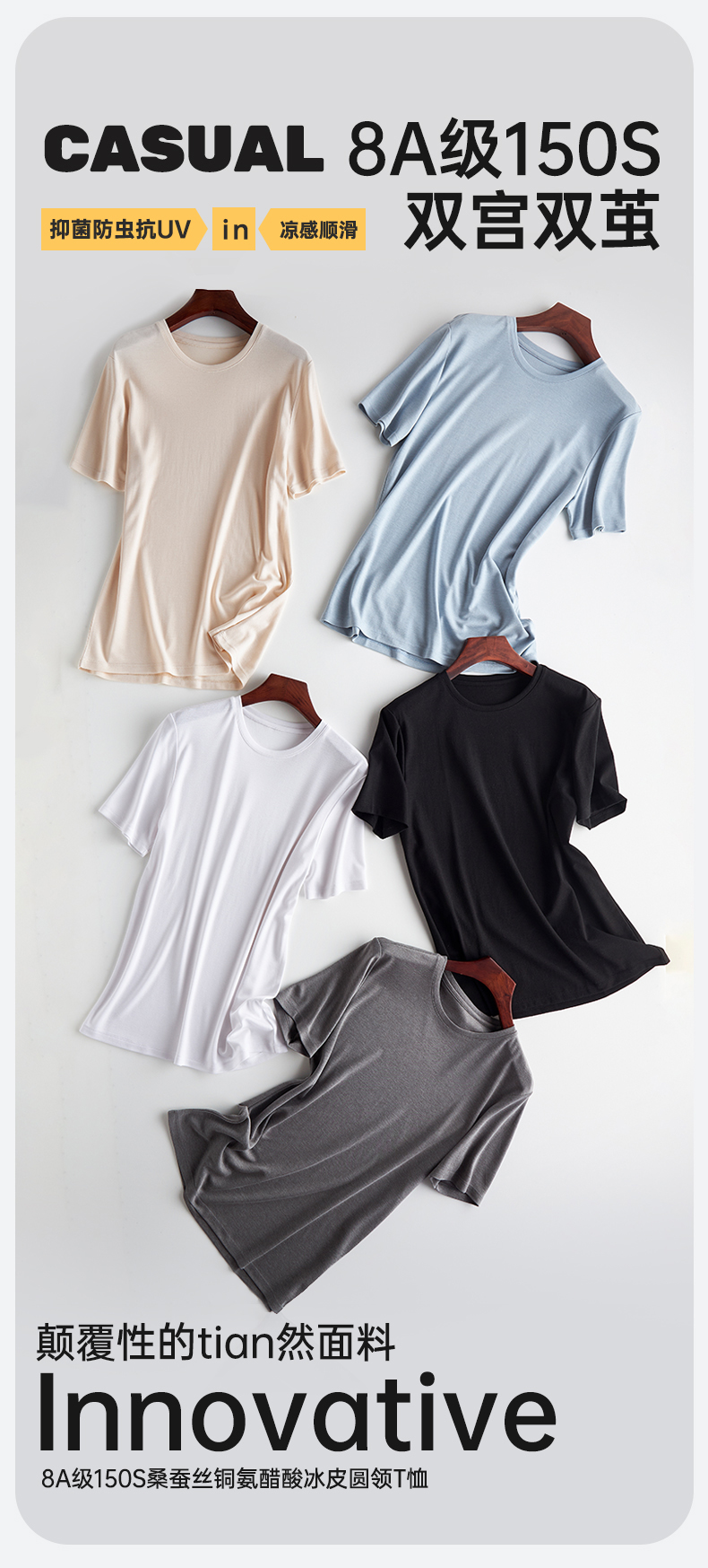 8A级150S桑蚕丝面料 铜氨醋酸冰皮圆领男士T恤