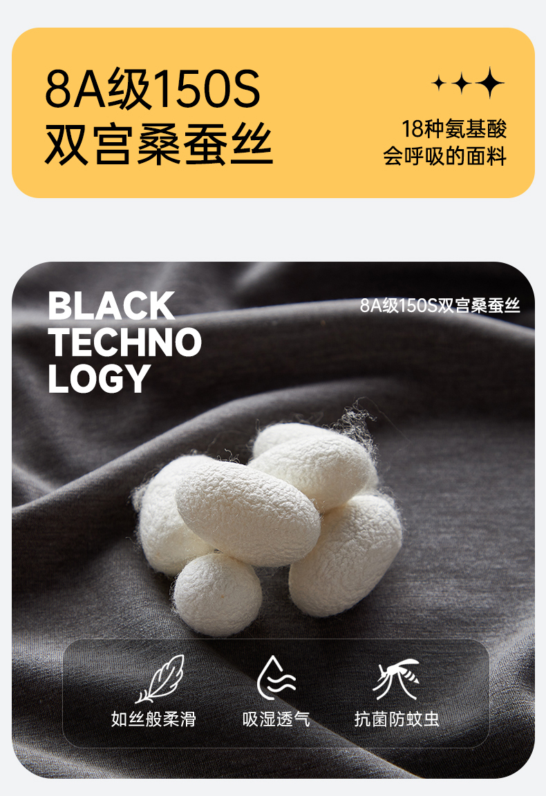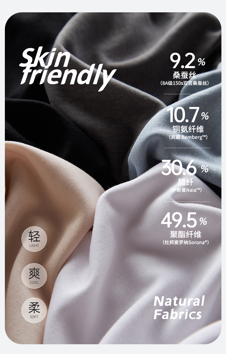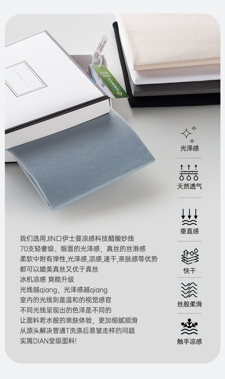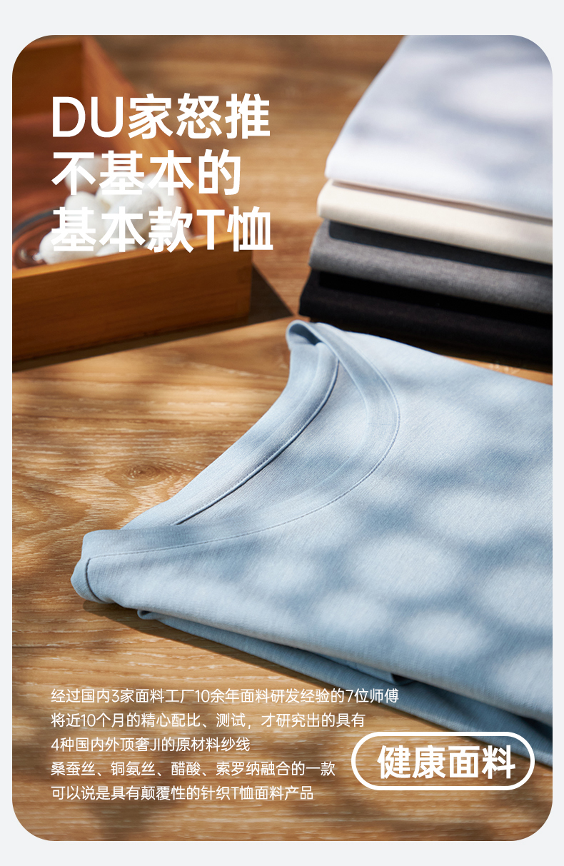8A级150S桑蚕丝面料 铜氨醋酸冰皮圆领男士T恤
