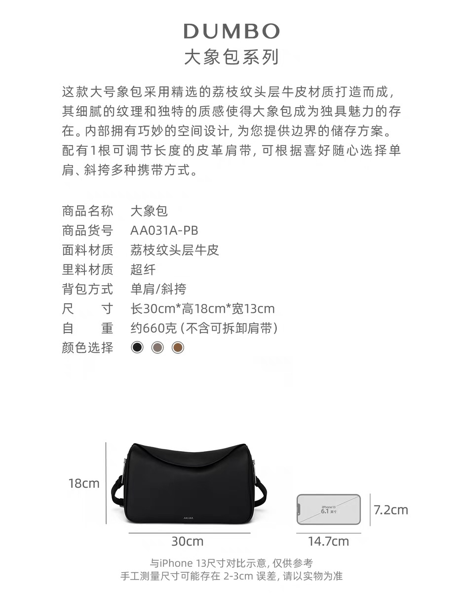 AKIIKA|Dumbo 大象腋下包 可斜挎 [ 黑 / 灰 / 棕褐 ]