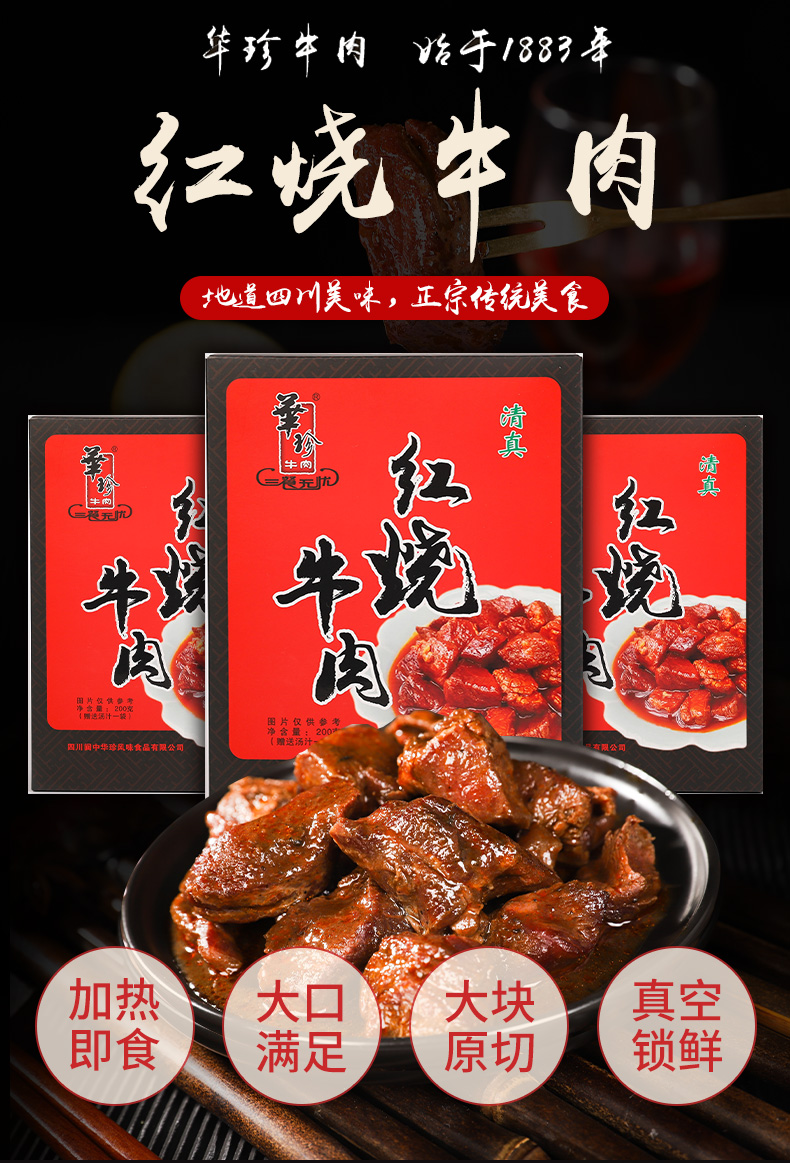 华珍红烧牛肉盒装真空午餐晚餐拿手菜即食肉制品小吃特产下饭熟食速食食品即食牛肉四川阆中特产