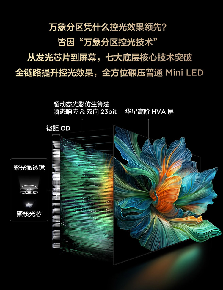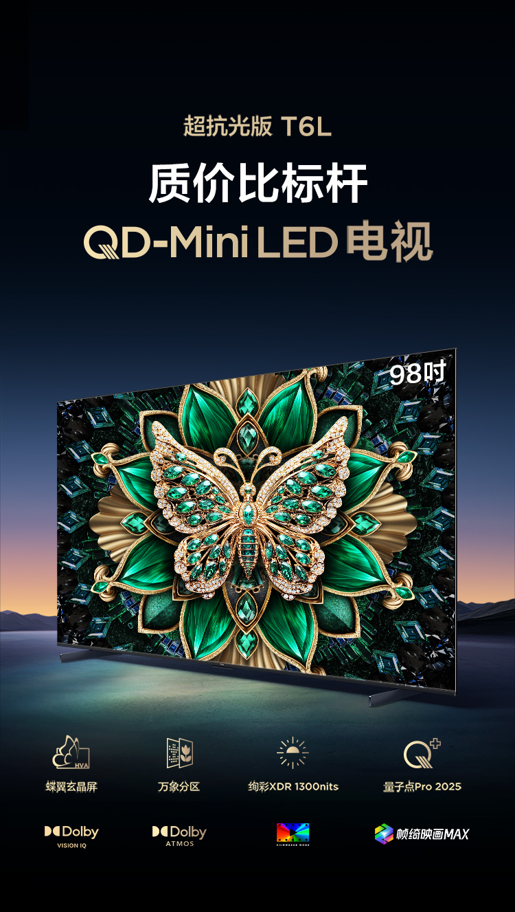 【TCL电视】 98T6L 98英寸 QD-Mini LED 万象分区 QLED量子点 绚彩XDR 1300nits 超薄电视