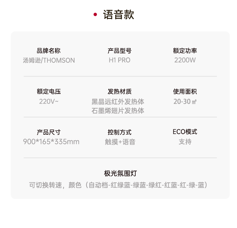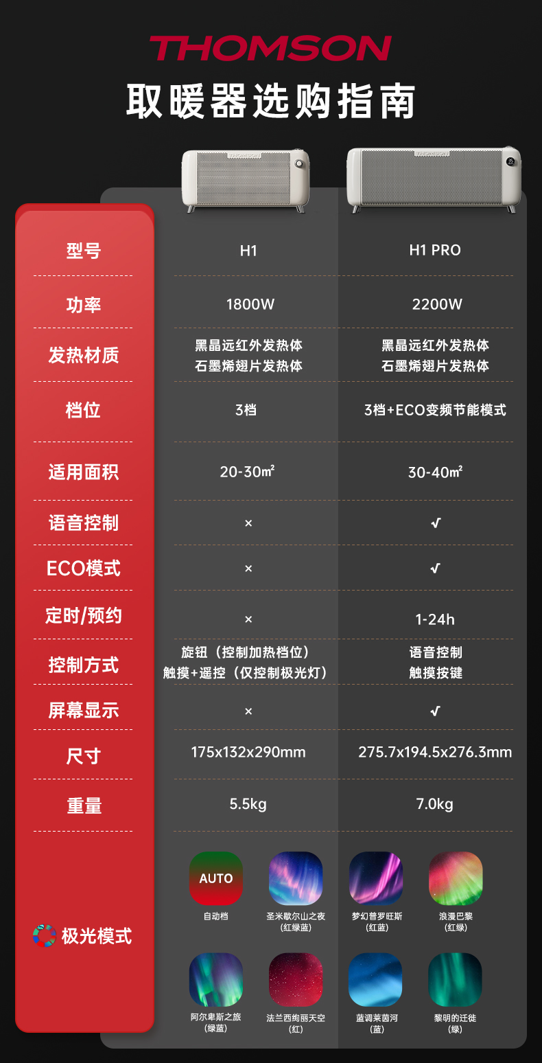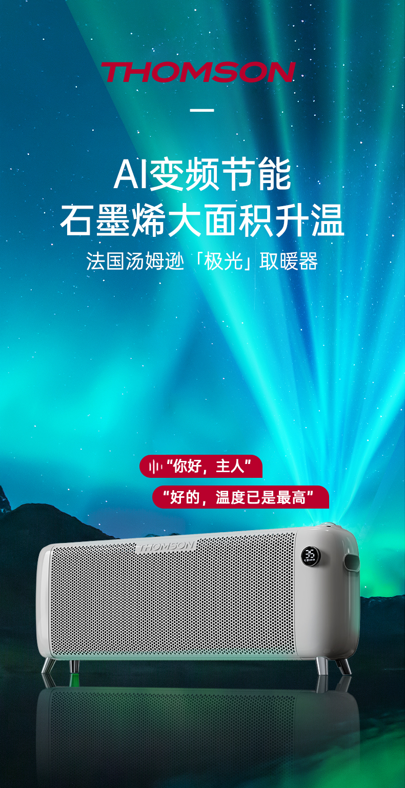 低于双11国补【2年以换代修 顺丰速运】THOMSON汤姆逊北欧极光取暖器省电石墨烯2200W/1800W
