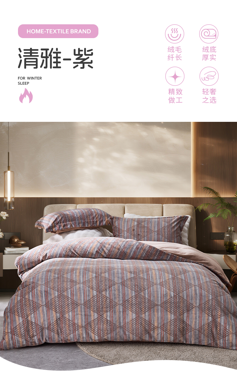 多喜爱 美眠康 牛奶绒套件 清雅-紫【不炸毛】【不起静电】【不掉毛】