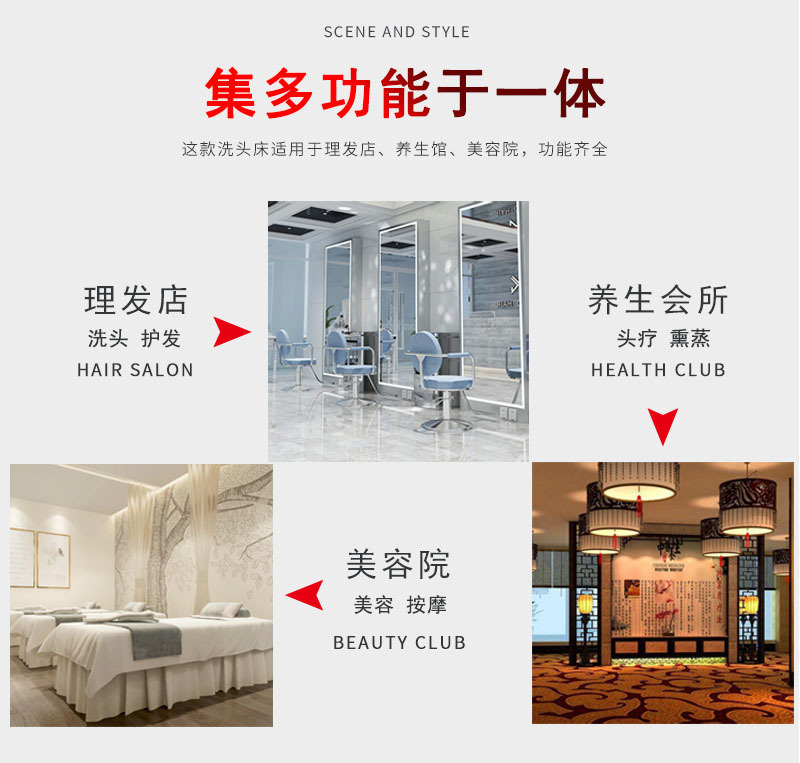 【广州仓发 可当天发包邮】泰式多功能水循环洗头床尺寸:2m*0.66m*0.65m