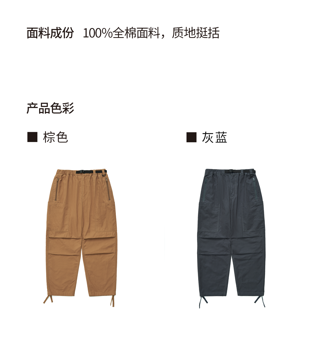 吃茶去chichaqu2024秋冬卡扣全棉伞兵裤工装复古宽松男女百搭男女