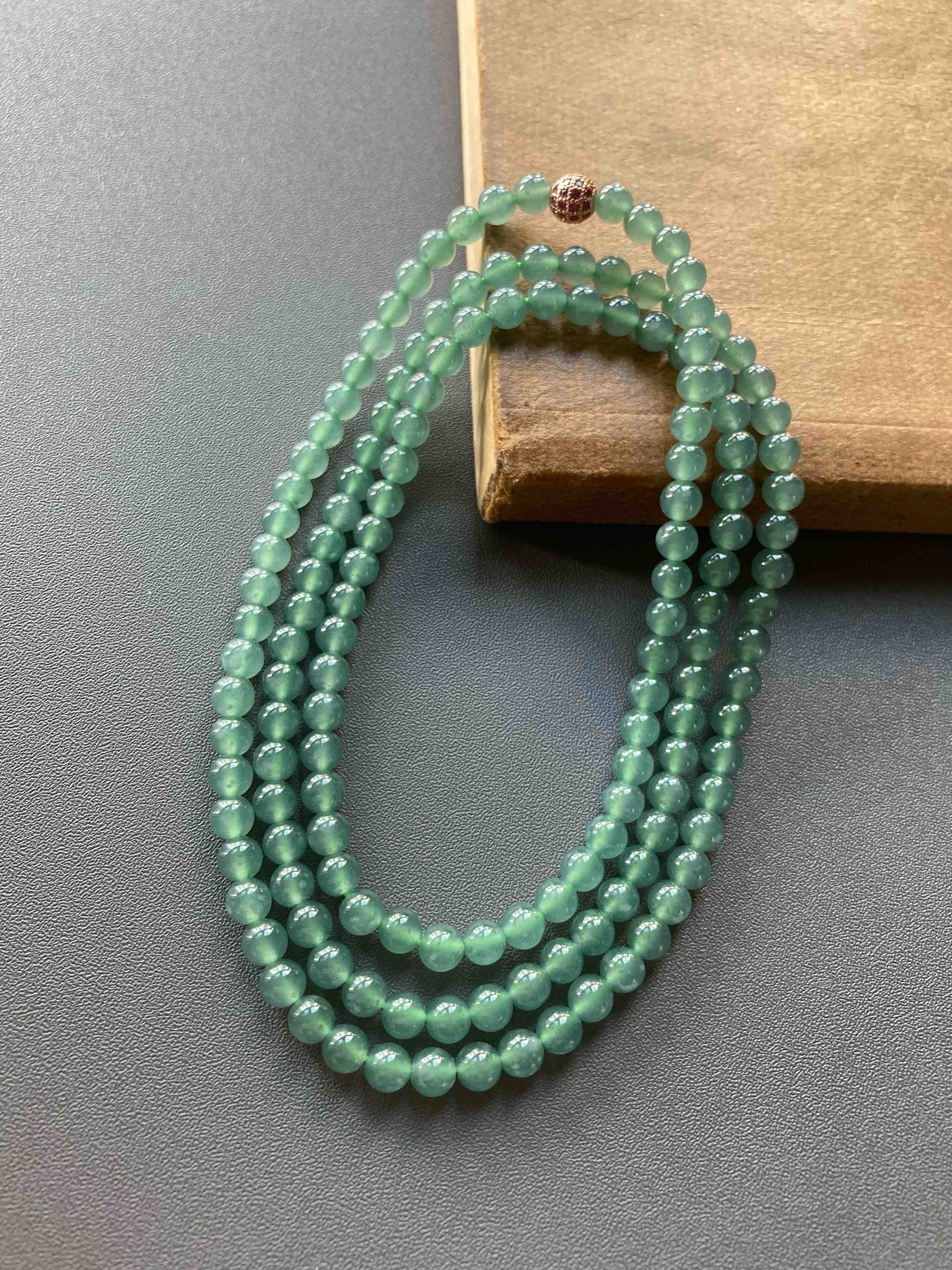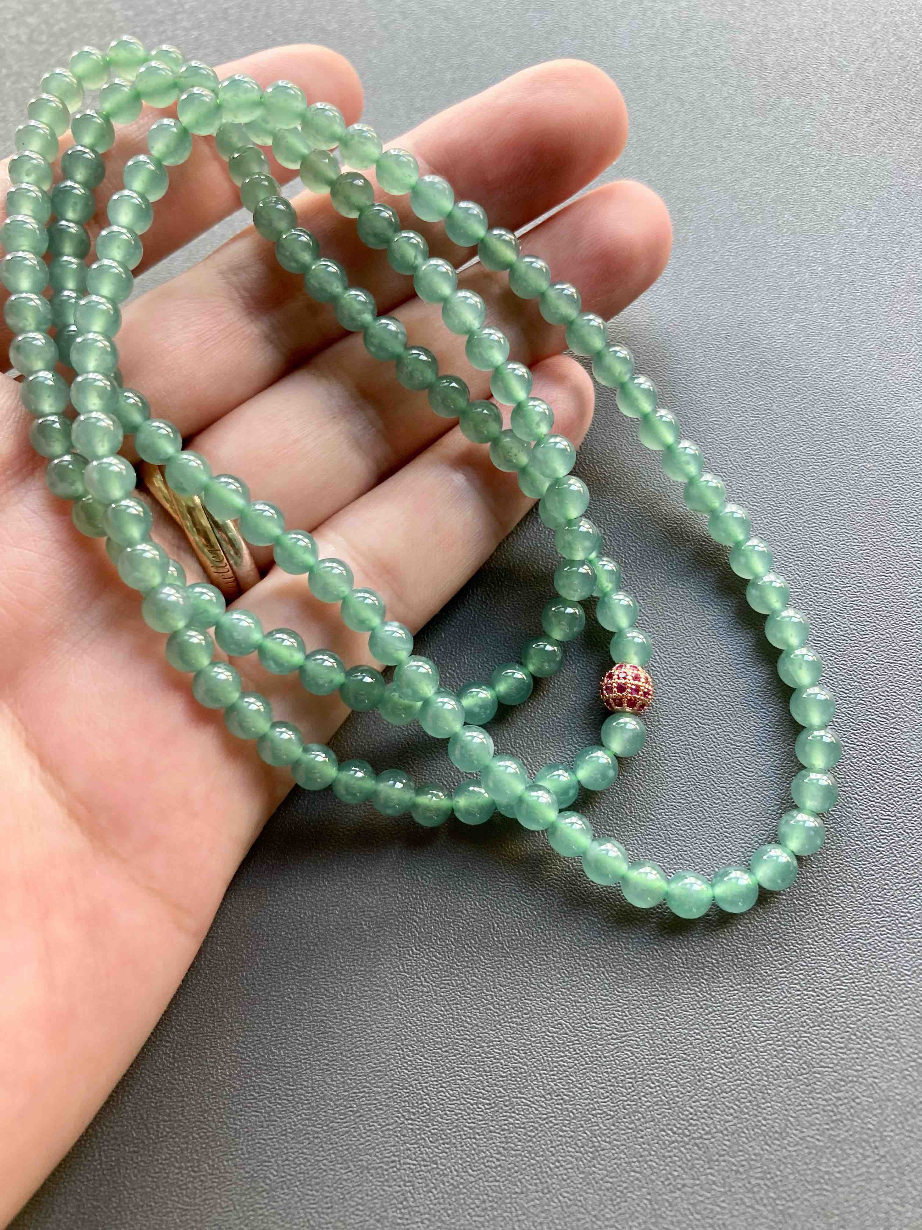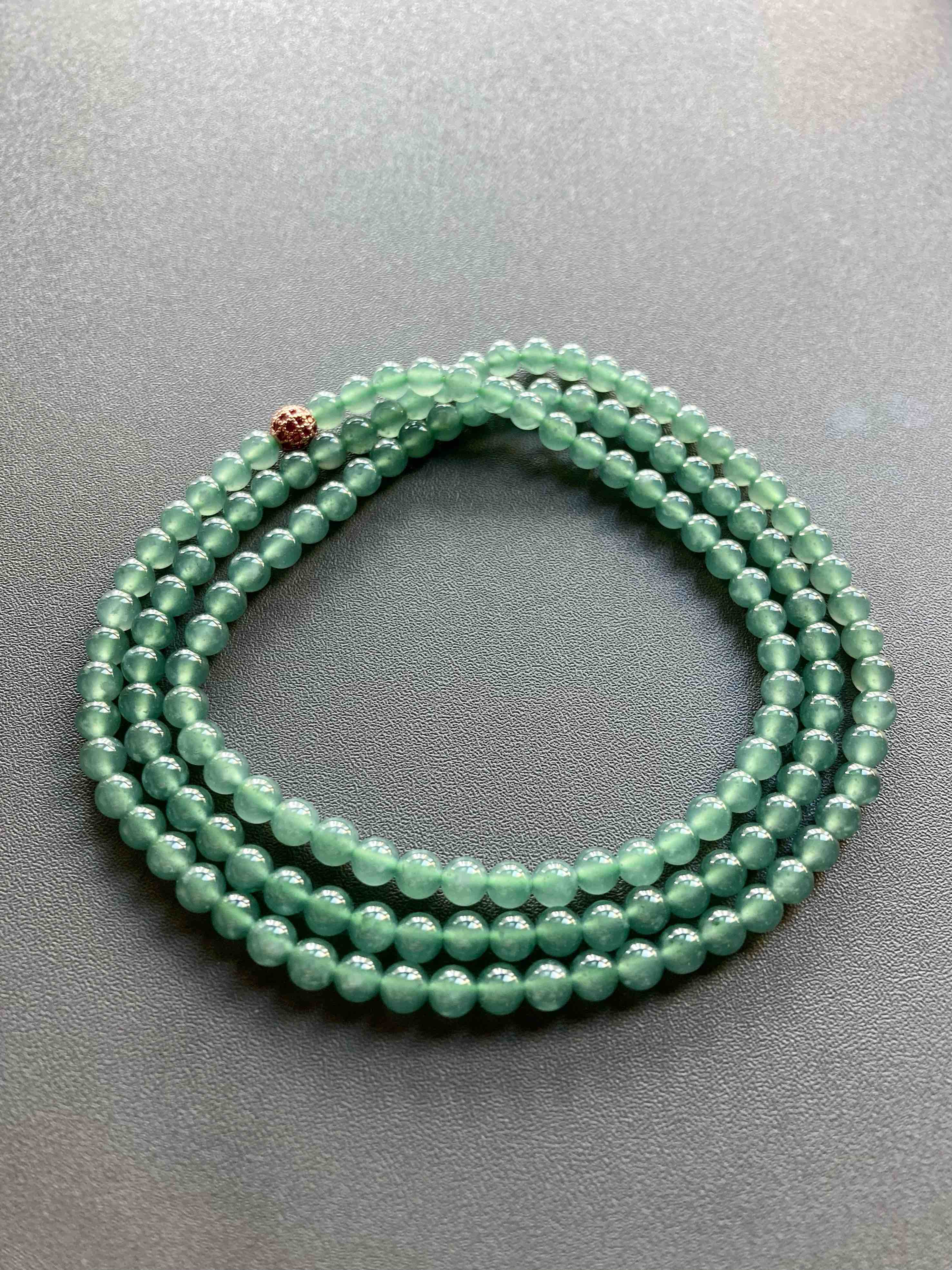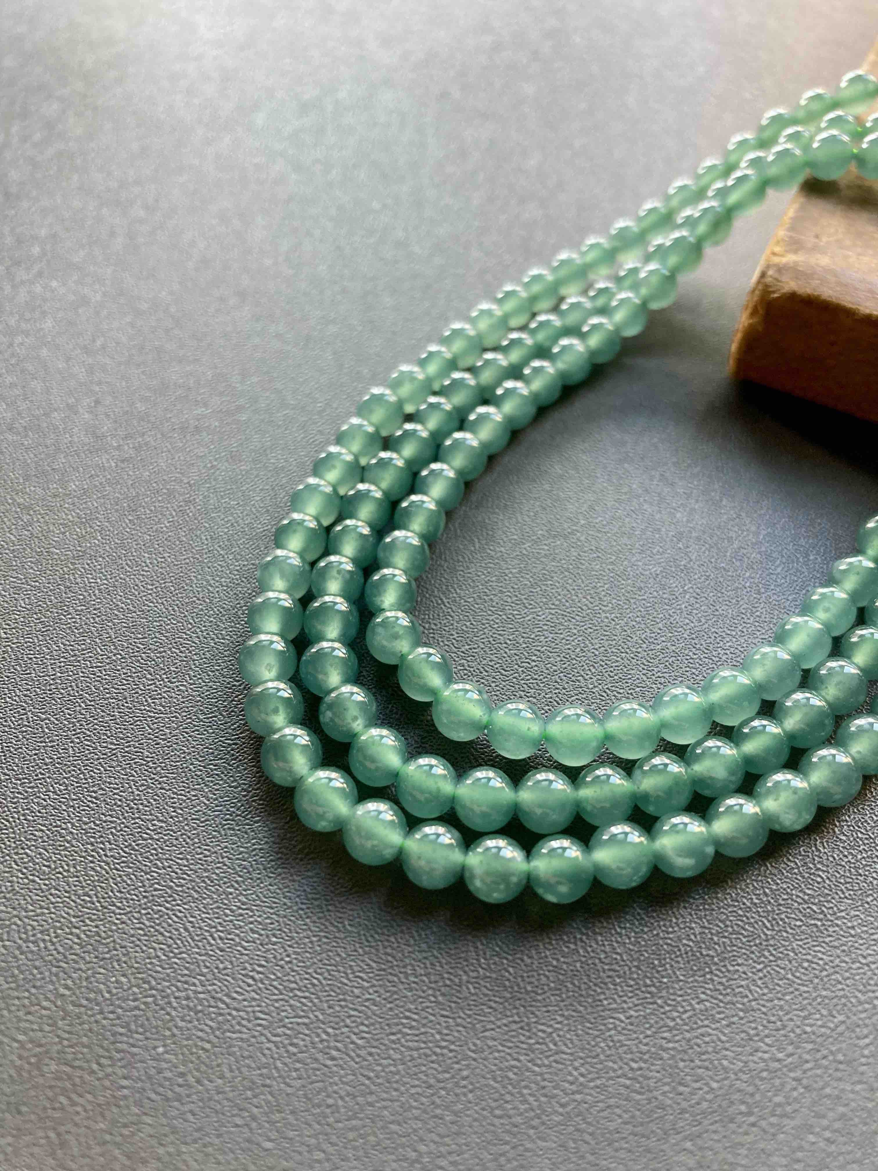 多久没见到种水这么好纯度这么高的高冰种晴水翡翠珠串了,种水晶莹剔透,起荧光,绿色优雅,品质真的太抓人眼球了,珠子大小5mm,69cm的长度做项链很不错,多绕几圈做手链十分漂亮,只要小四价位,性价比无敌