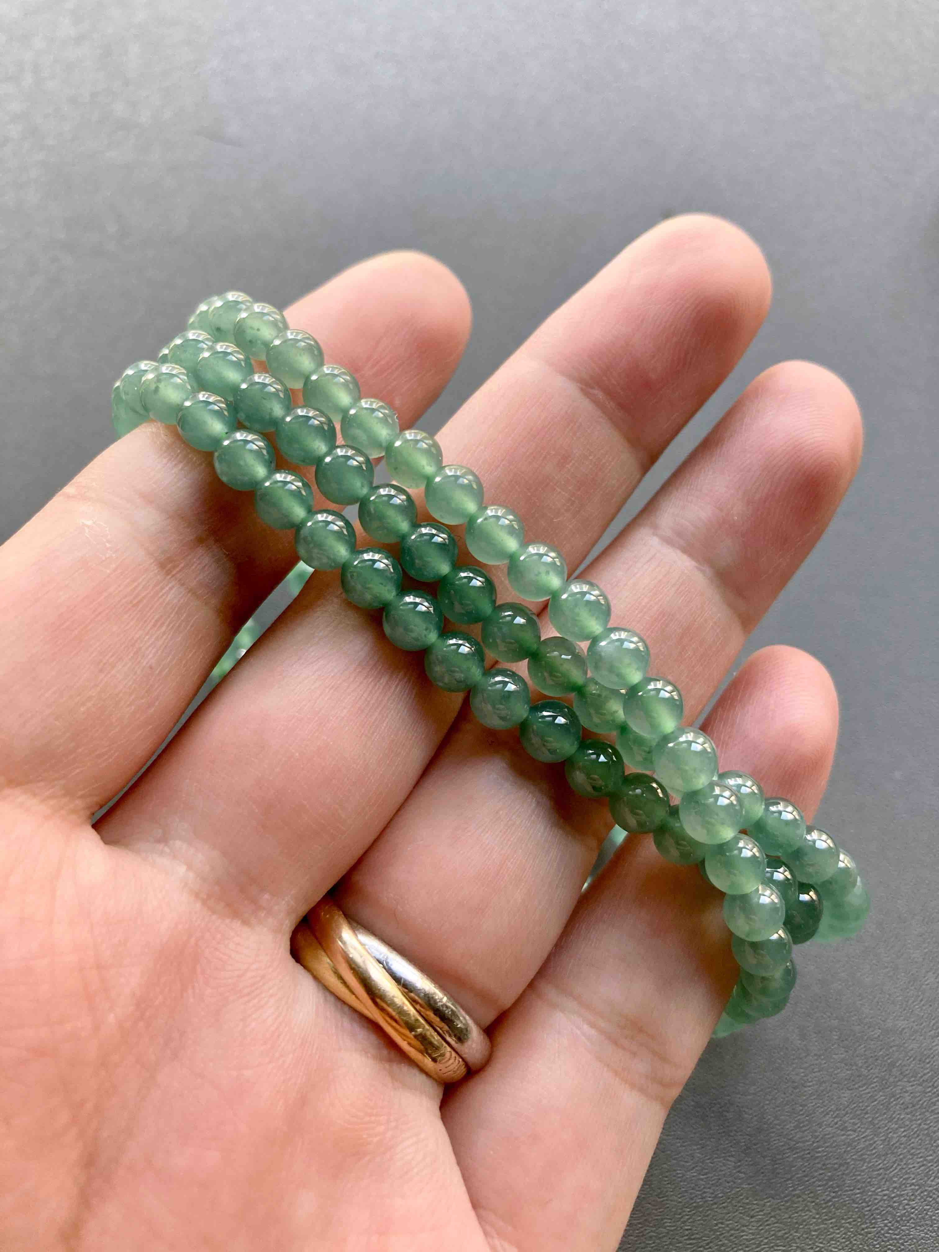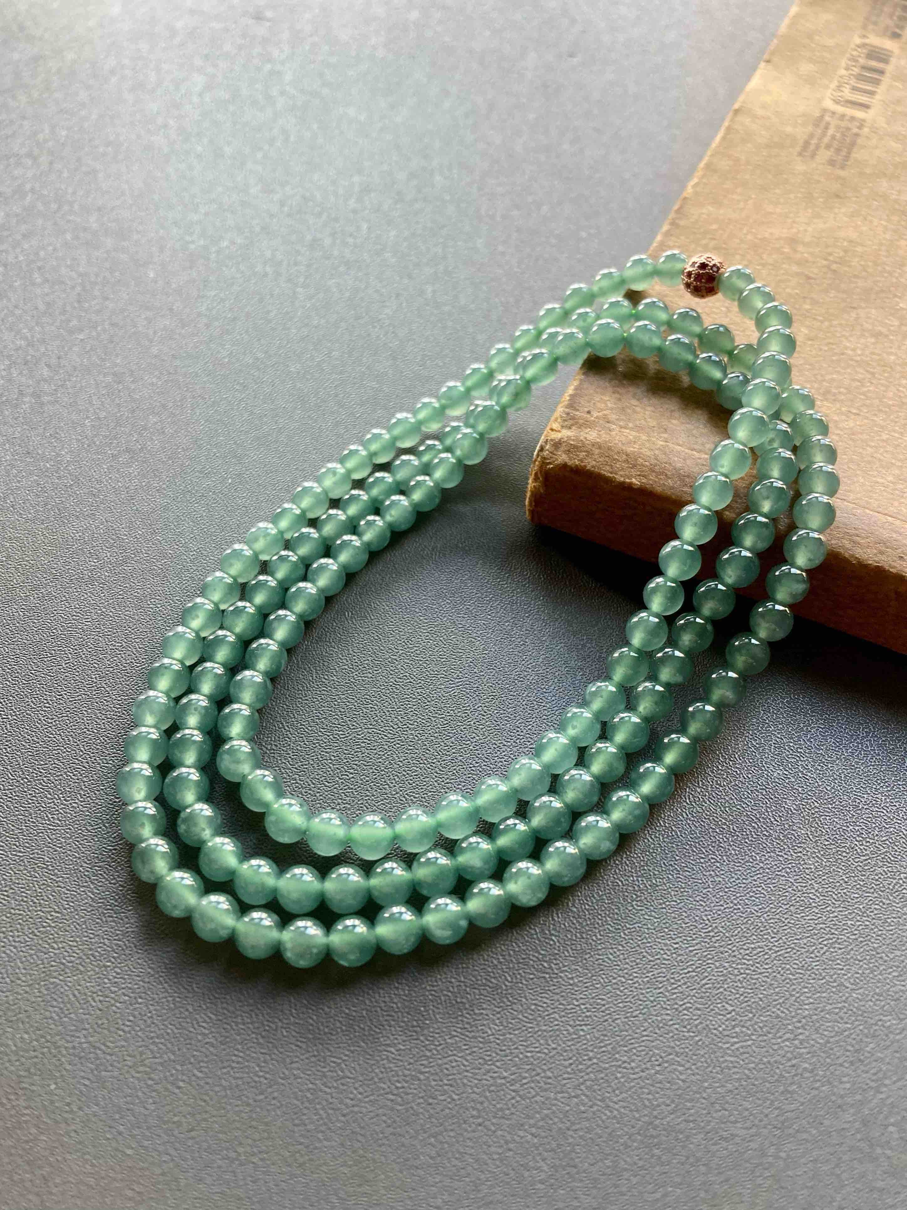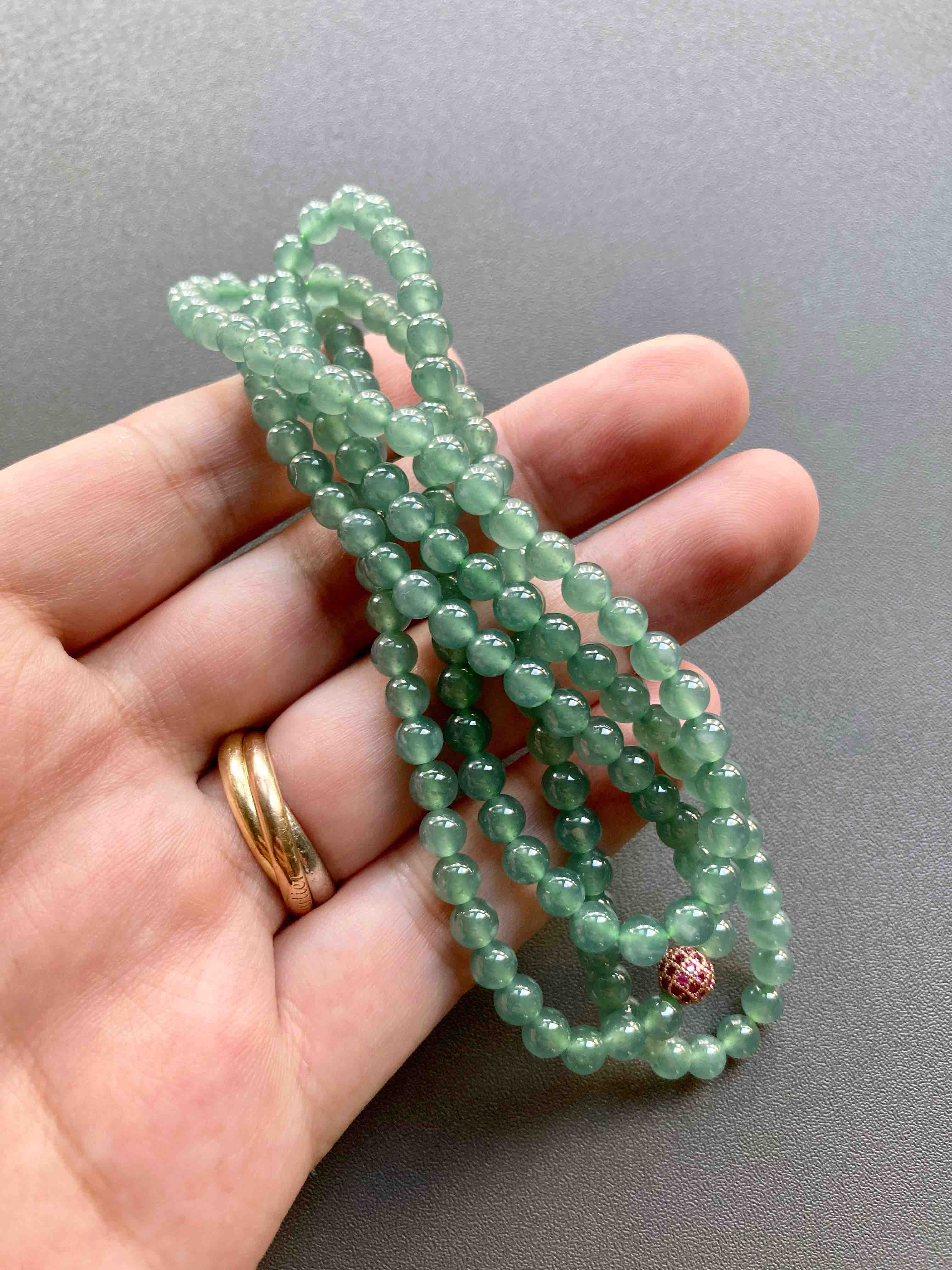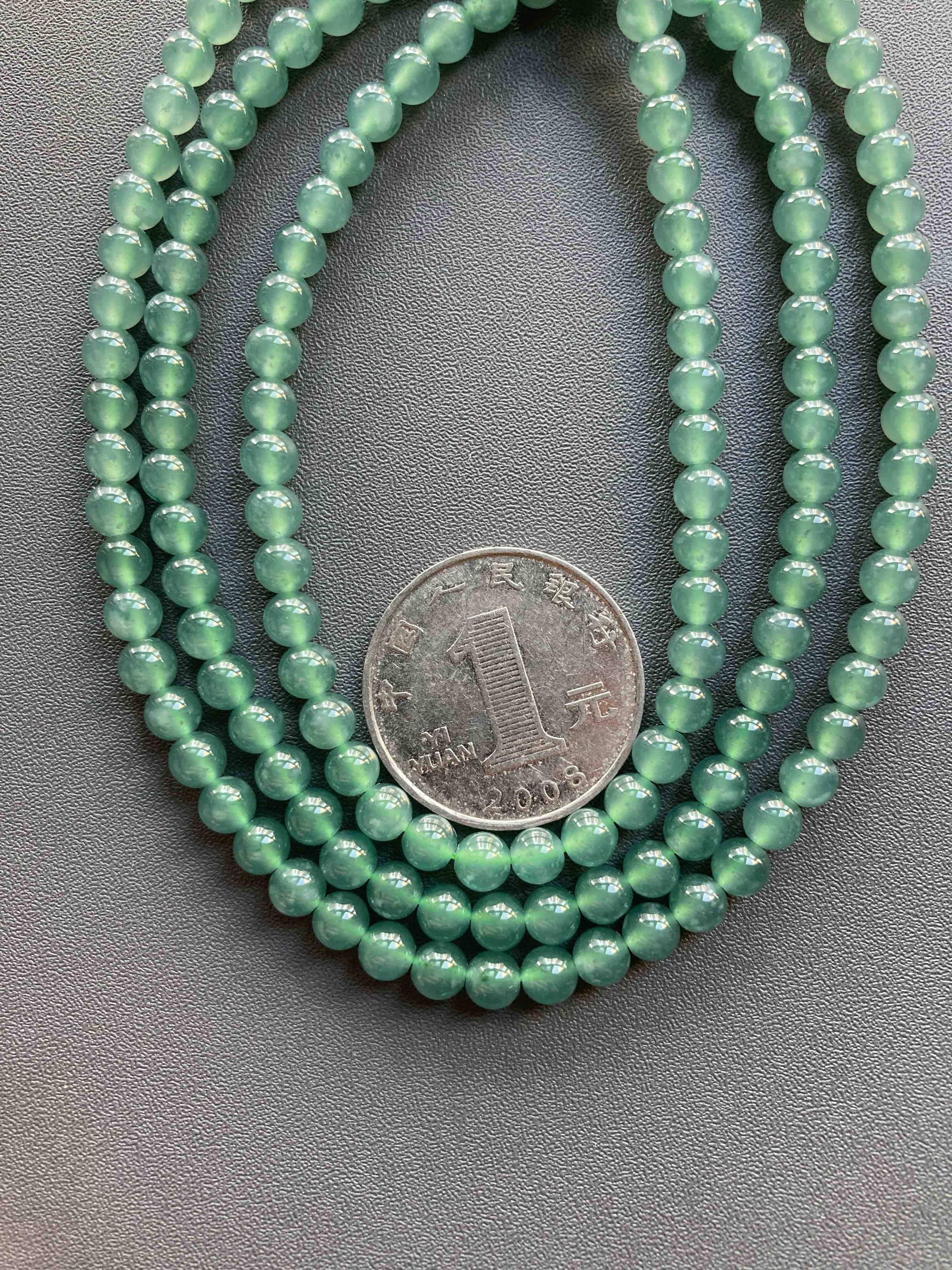 多久没见到种水这么好纯度这么高的高冰种晴水翡翠珠串了,种水晶莹剔透,起荧光,绿色优雅,品质真的太抓人眼球了,珠子大小5mm,69cm的长度做项链很不错,多绕几圈做手链十分漂亮,只要小四价位,性价比无敌