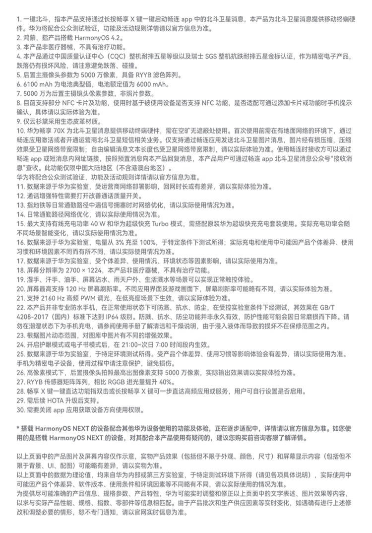 华为畅享 70X 手机巨鲸长续航 双曲护眼屏 五星超耐摔 鸿蒙曲面屏手机