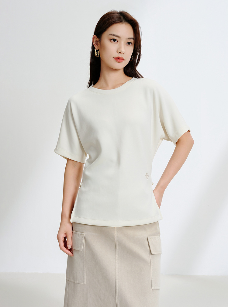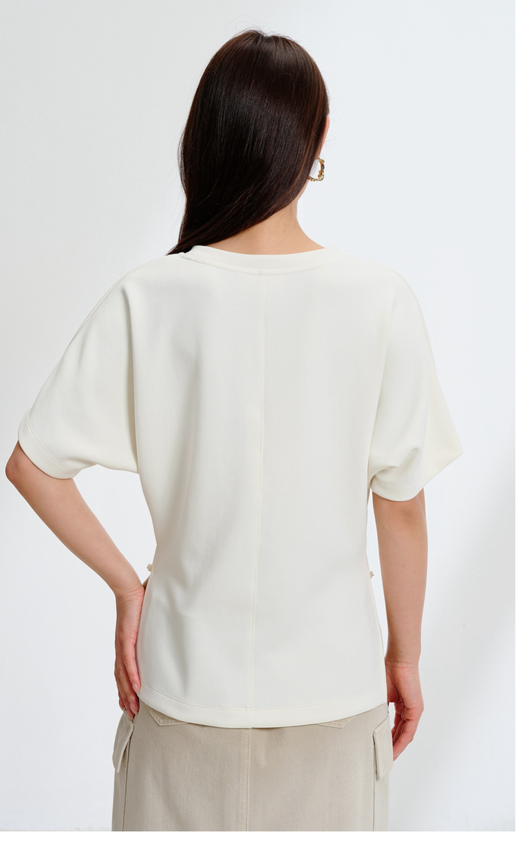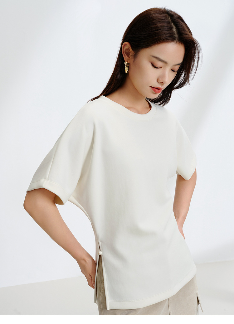 2025春季新款女装 亲肤双面针织修身开叉短袖t恤上衣!