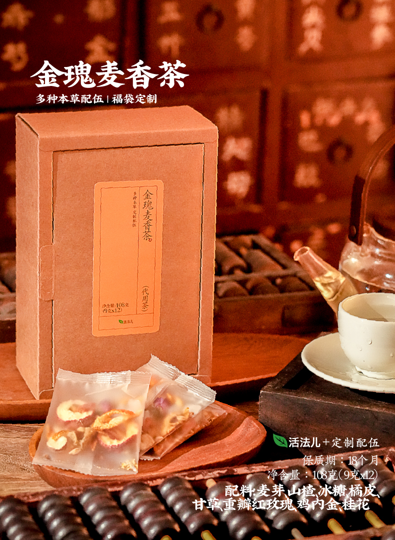 [福袋捡漏]金瑰麦香茶 | 花茶袋装茶包内含12袋组合花茶。麦芽山楂冰糖橘皮甘草重瓣红玫瑰鸡内金桂花