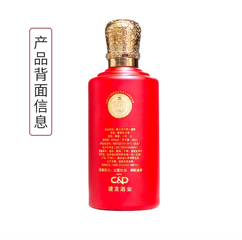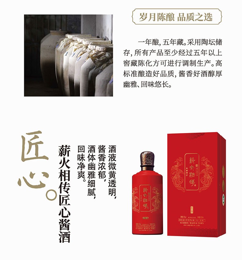 建发酒业 薪火相传匠心酱酒 53度大曲坤沙 固态发酵高度白酒 500ml 贵州茅台镇 酱香型白酒 单瓶