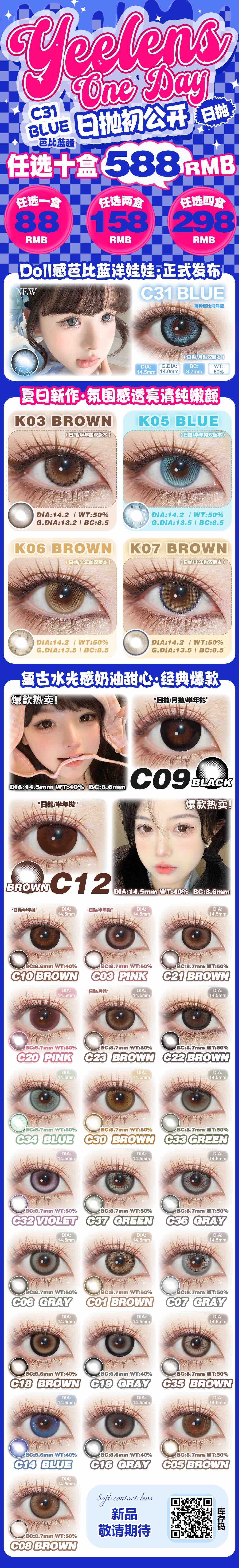 王柠檬同款 yeelens日抛美瞳活动合集 【c01/c03/c05/c07/c08/c09/c10/c11/c12等】【一盒10片装 无售后】