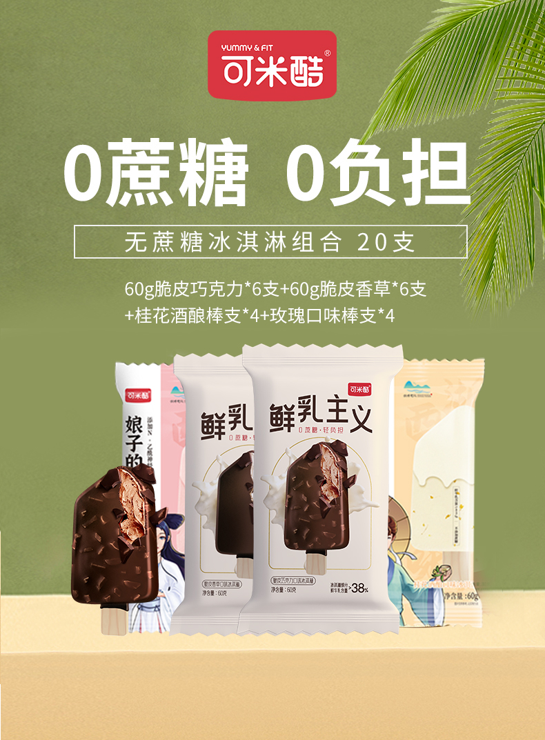 【VIP兑换20件】可米酷无蔗糖冰激淋减糖觉醒时代芒果冰棒网红冰激凌批发冰糕雪糕