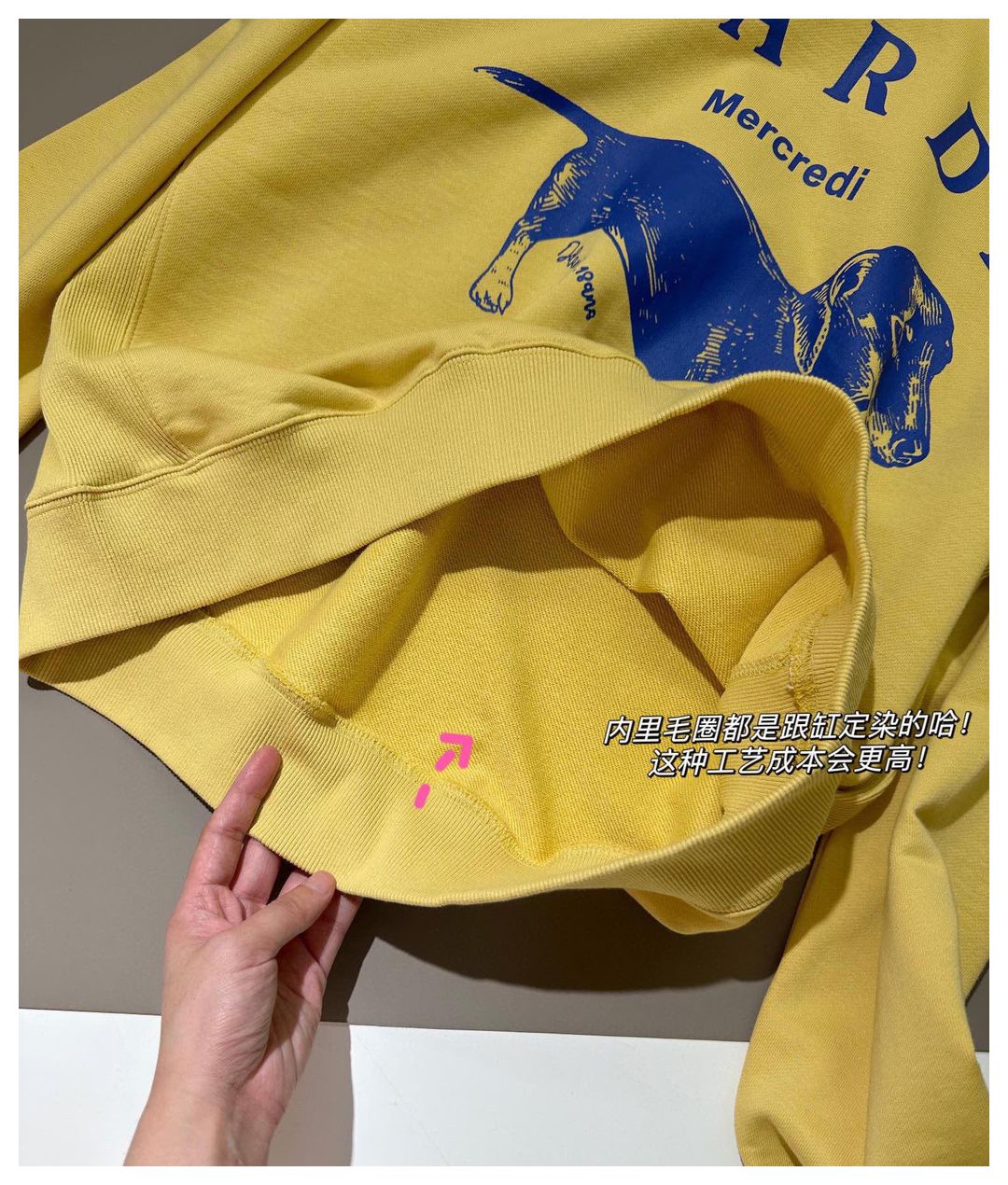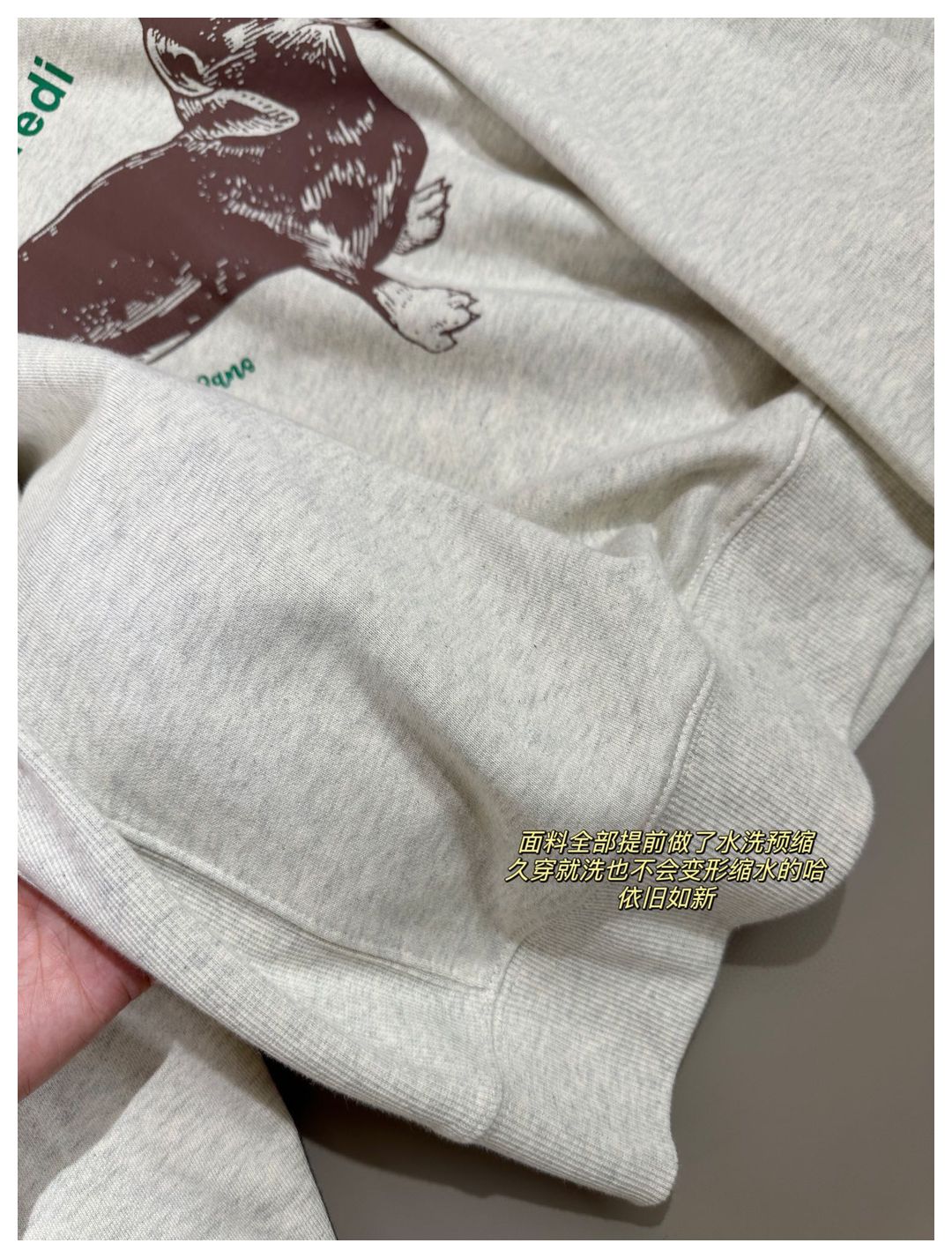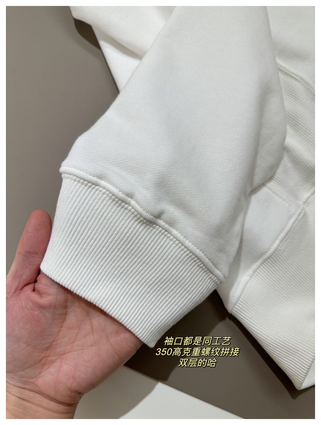 面料是420gsm原纱定染的 高克重 !心细的宝子们肯定也会发现 它的克重其实是比市面上很多连帽卫衣克重还高!而且成布之前还都做了多次的预缩处理🔺我敢说 市面上90%以上不做水洗预缩 回家穿穿就变形了 这就是我们跟市面的最大区别‼️想穿原版的来