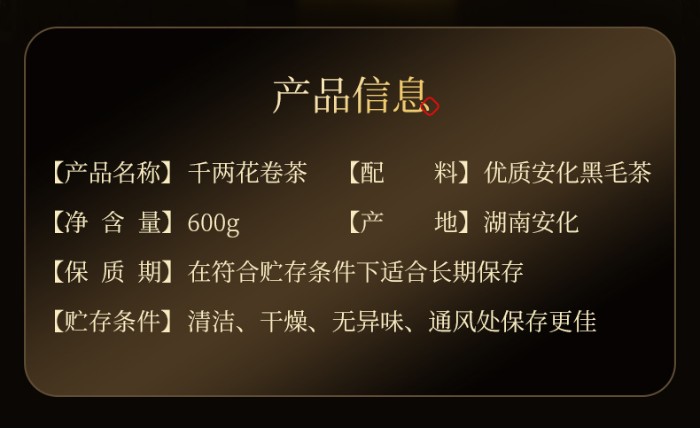 茶马世家 千两花卷茶 2012年湖南特产 礼盒装600g
