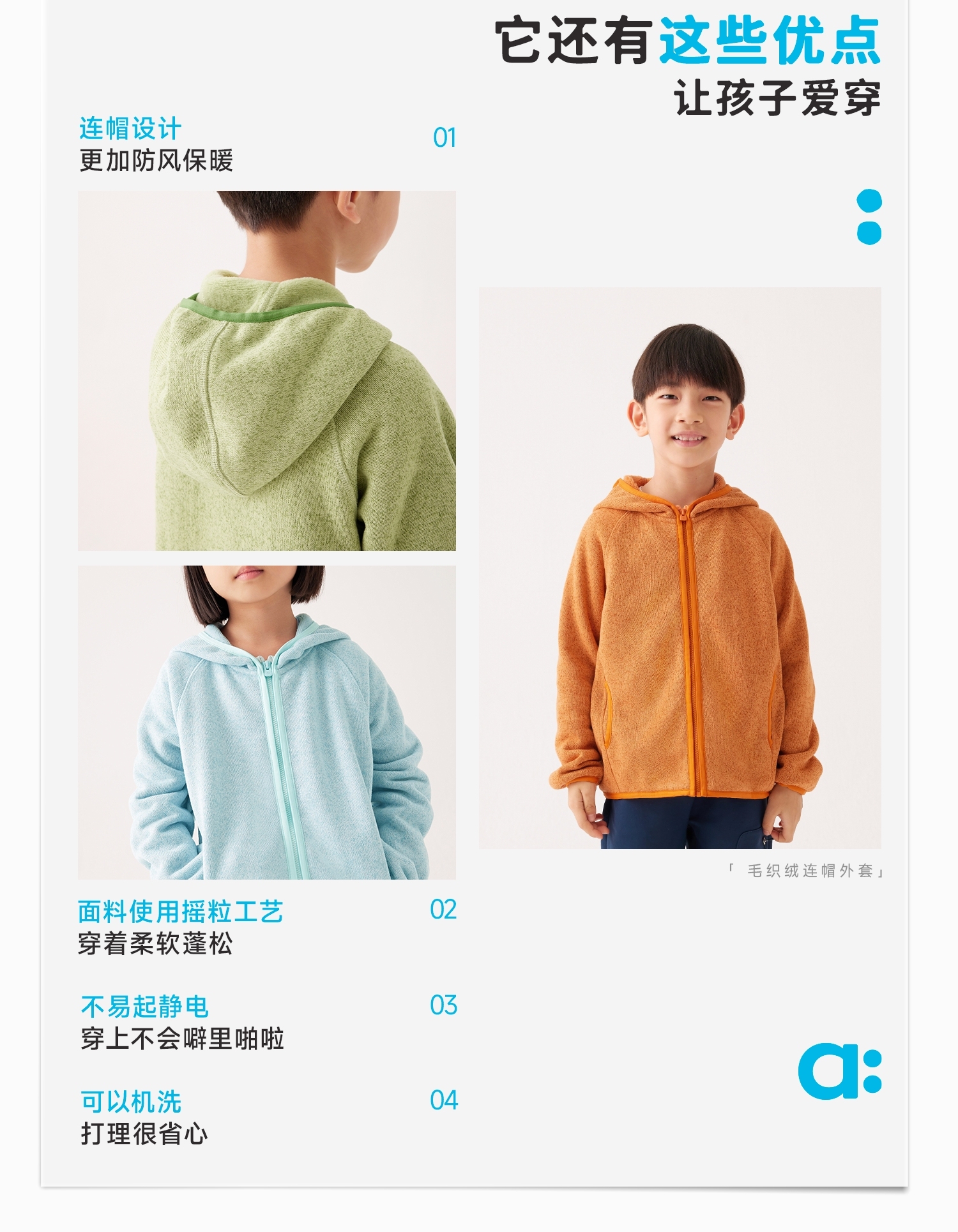 【秋Vol.3】幼岚童装「毛织绒」连帽外套防风轻盈保暖24秋新款儿童男女童外套